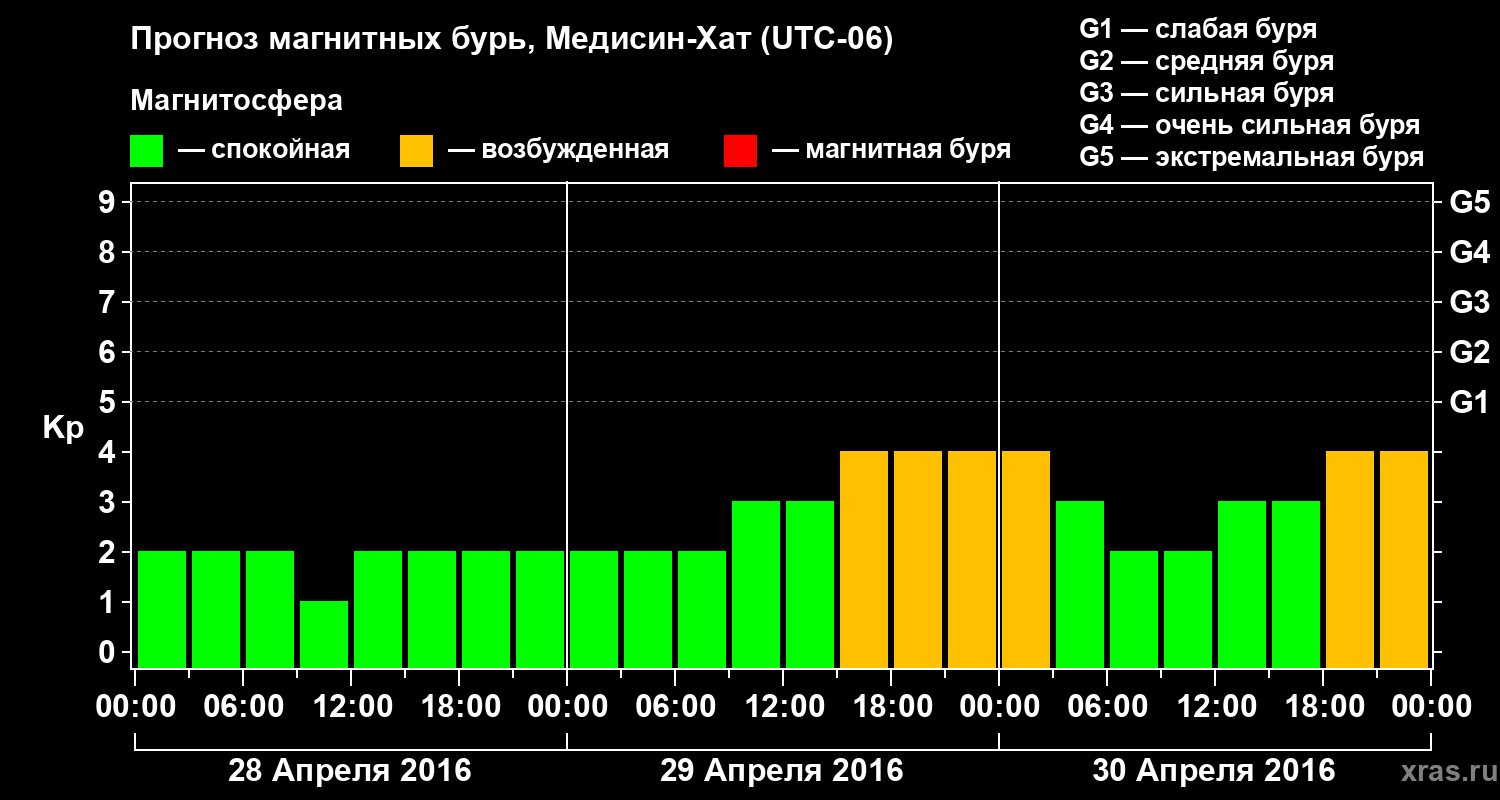 Прогноз магнитных бурь в Медисин-Хате — 28 апреля 2016 года