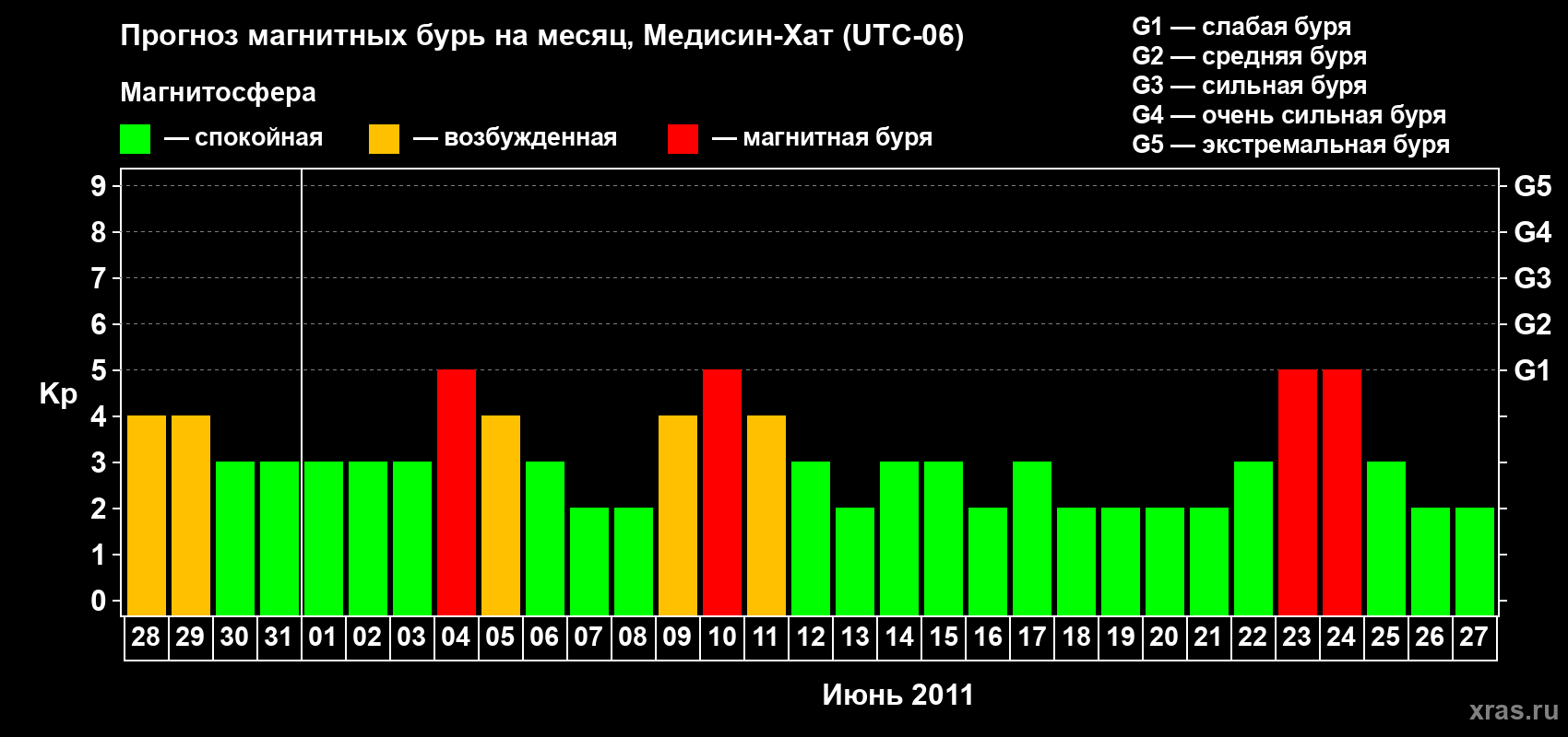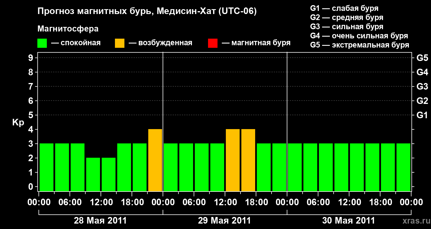 Прогноз магнитных бурь в Медисин-Хате — 28 мая 2011 года