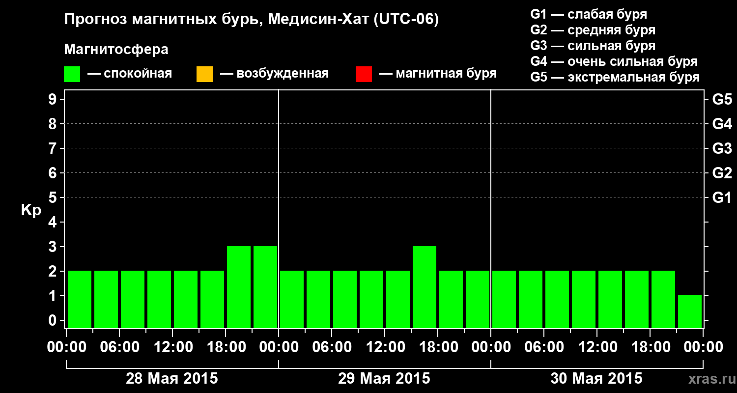 Прогноз магнитных бурь в Медисин-Хате — 28 мая 2015 года