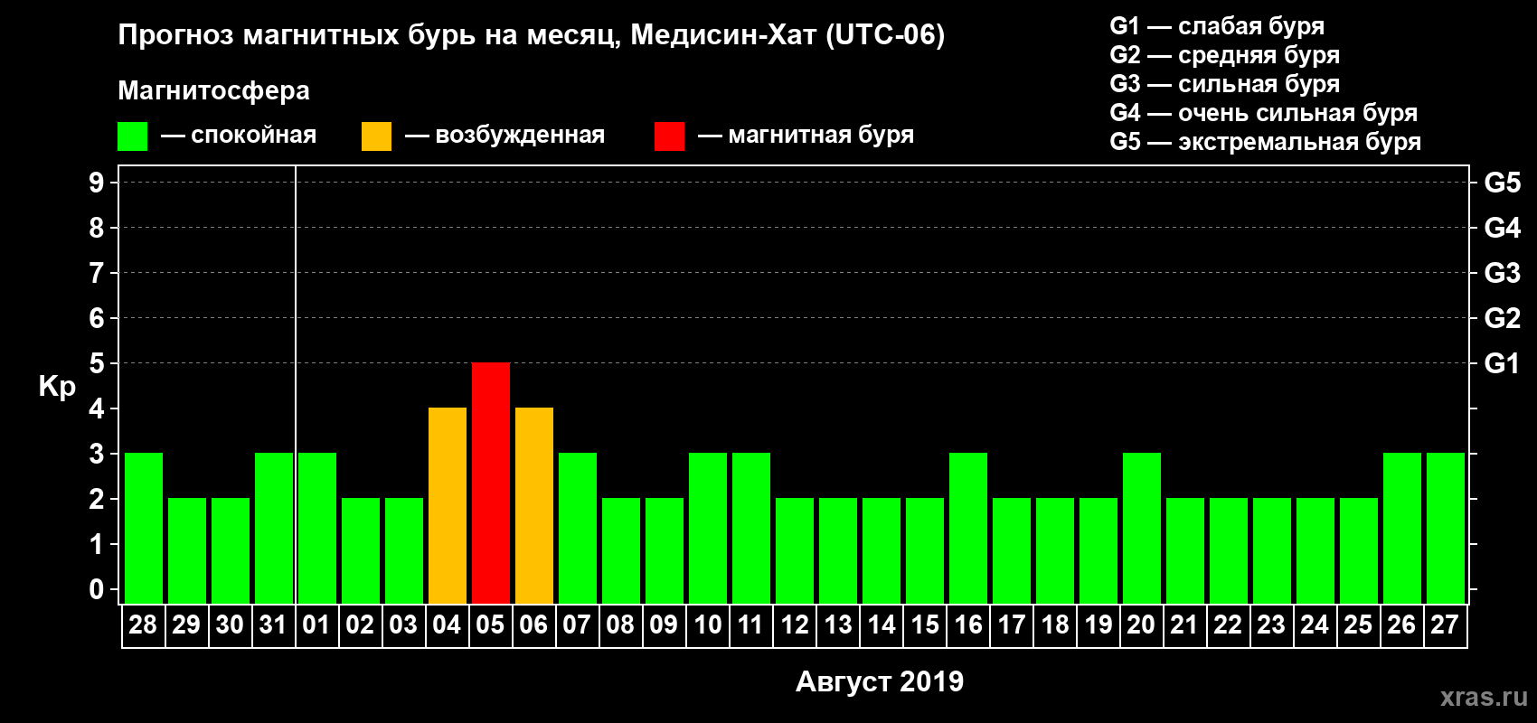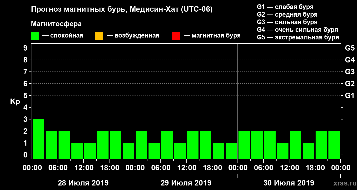 Прогноз магнитных бурь в Медисин-Хате — 28 июля 2019 года