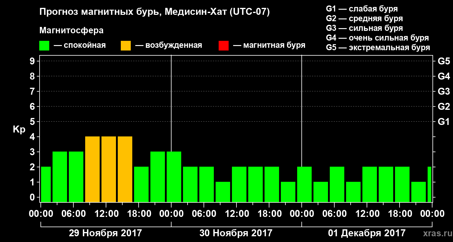 Прогноз магнитных бурь в Медисин-Хате — 29 ноября 2017 года