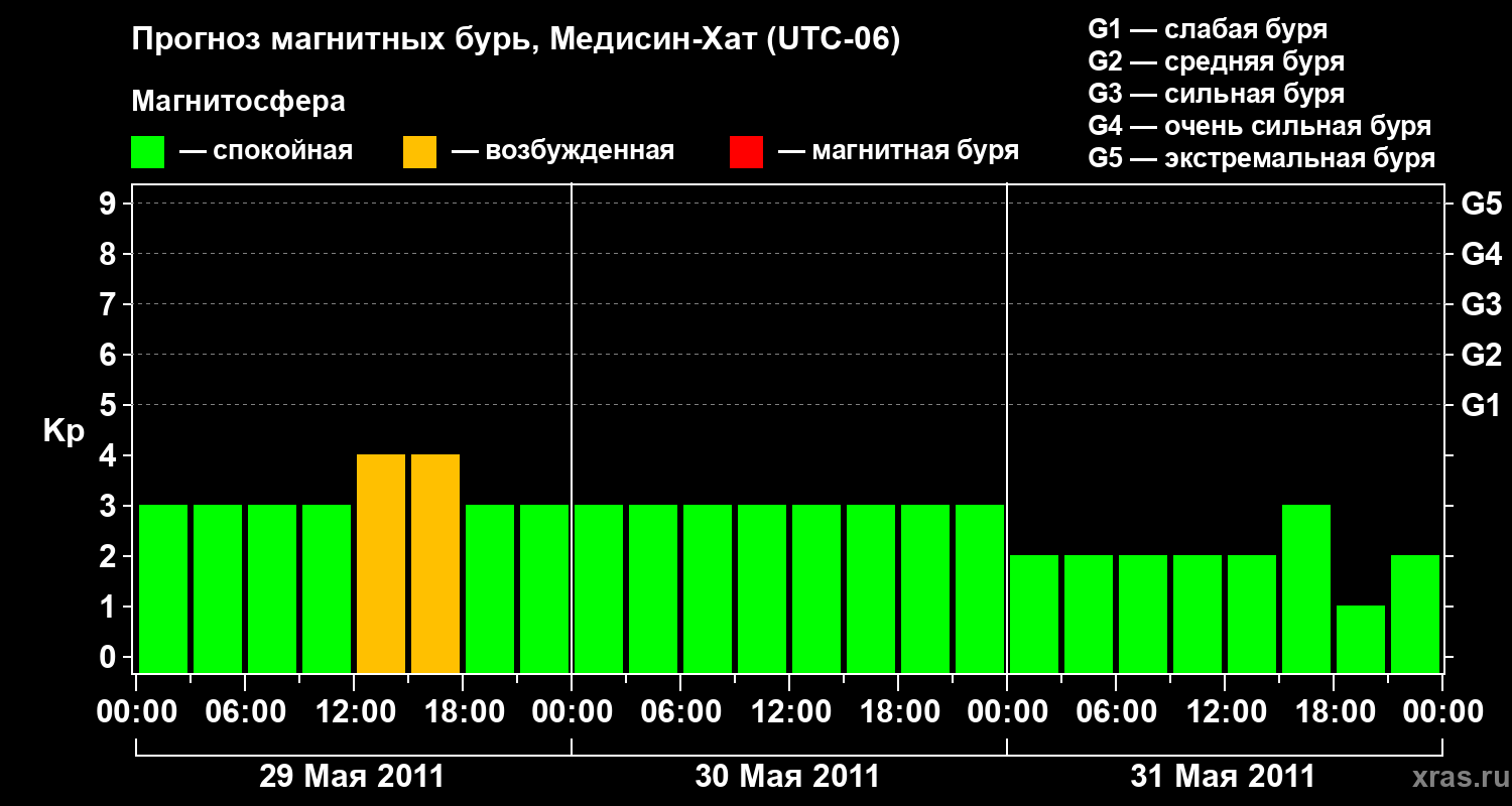 Прогноз магнитных бурь в Медисин-Хате — 29 мая 2011 года