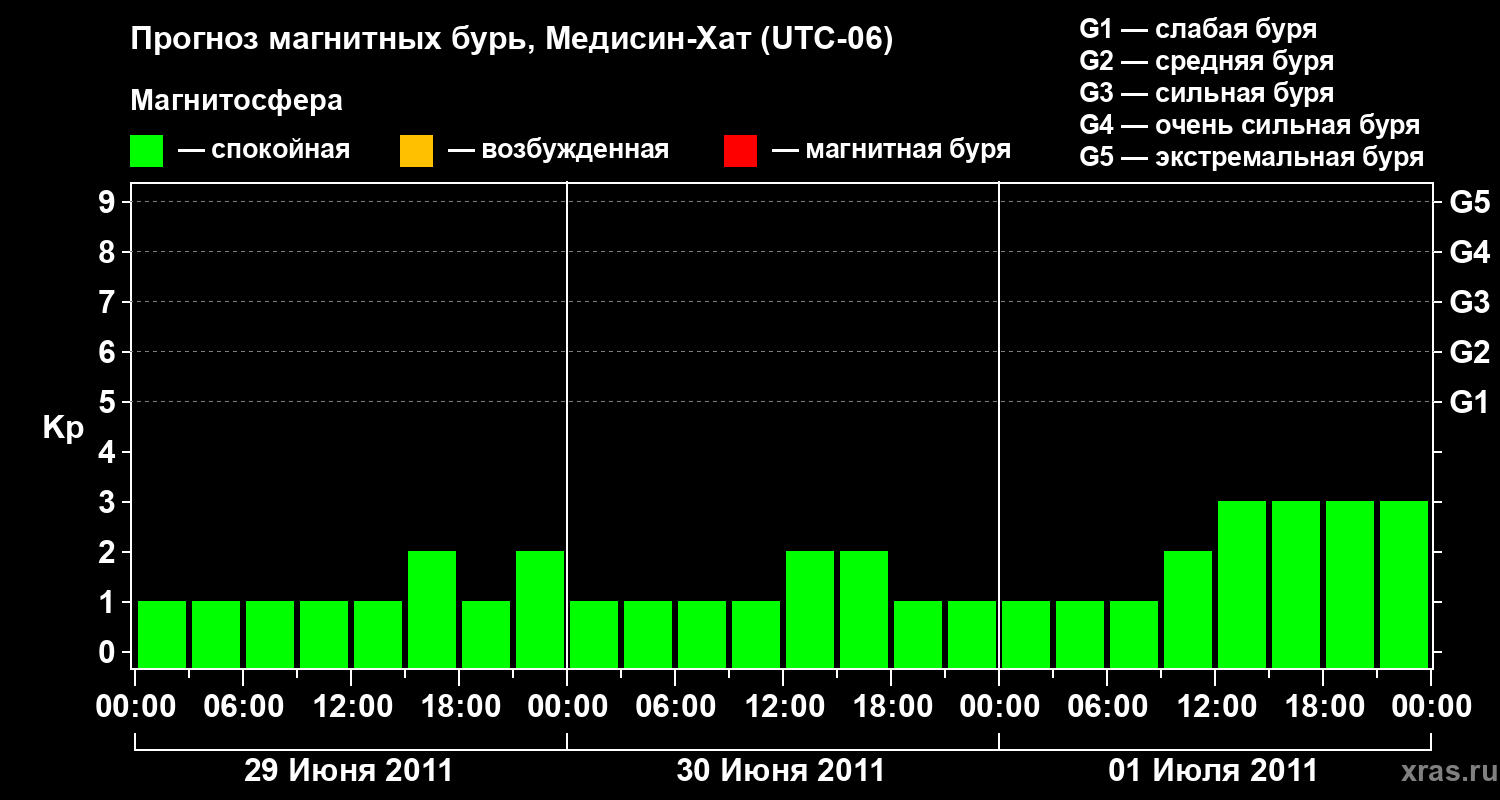 Прогноз магнитных бурь в Медисин-Хате — 29 июня 2011 года