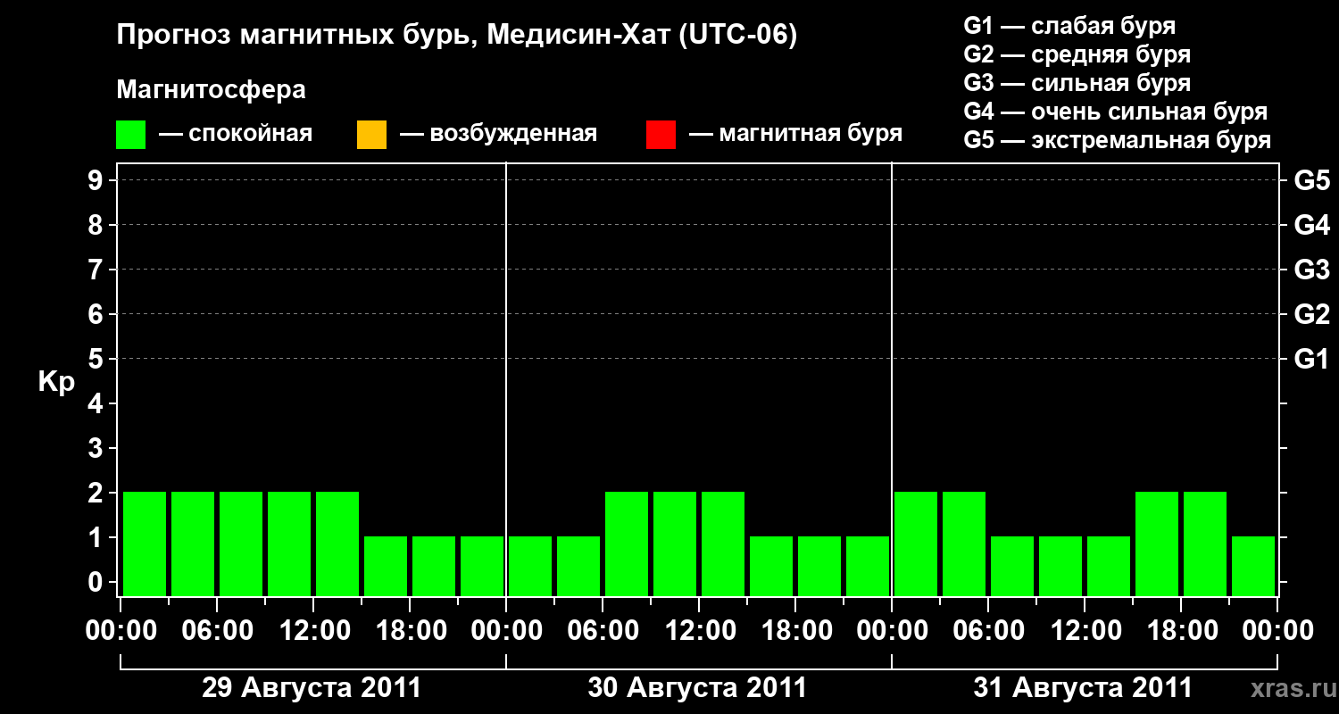 Прогноз магнитных бурь в Медисин-Хате — 29 августа 2011 года