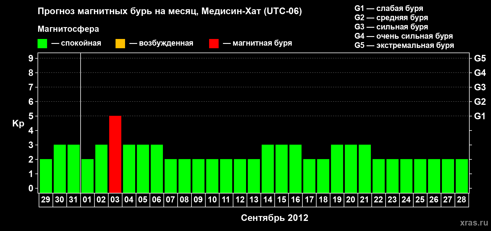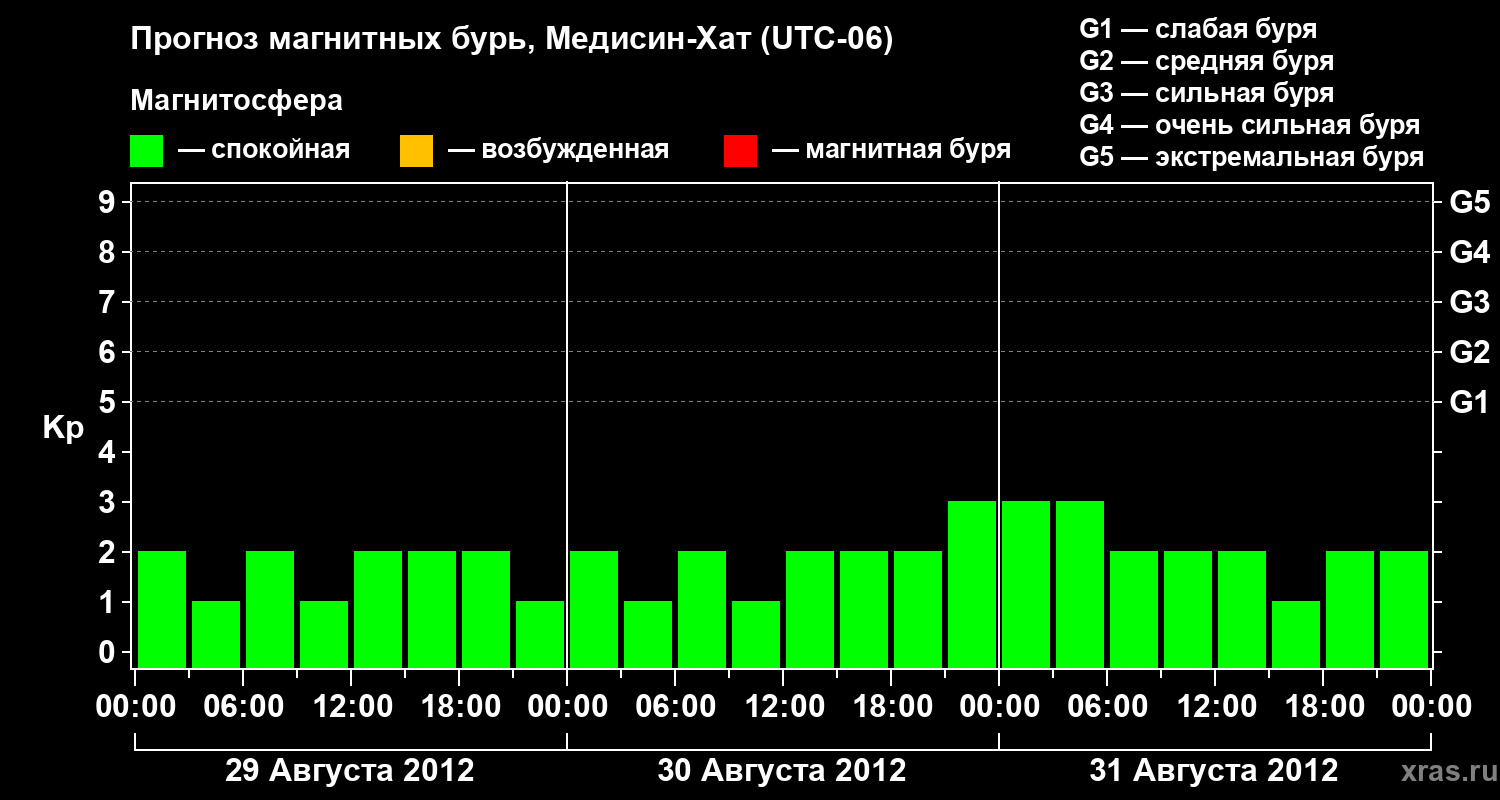 Прогноз магнитных бурь в Медисин-Хате — 29 августа 2012 года