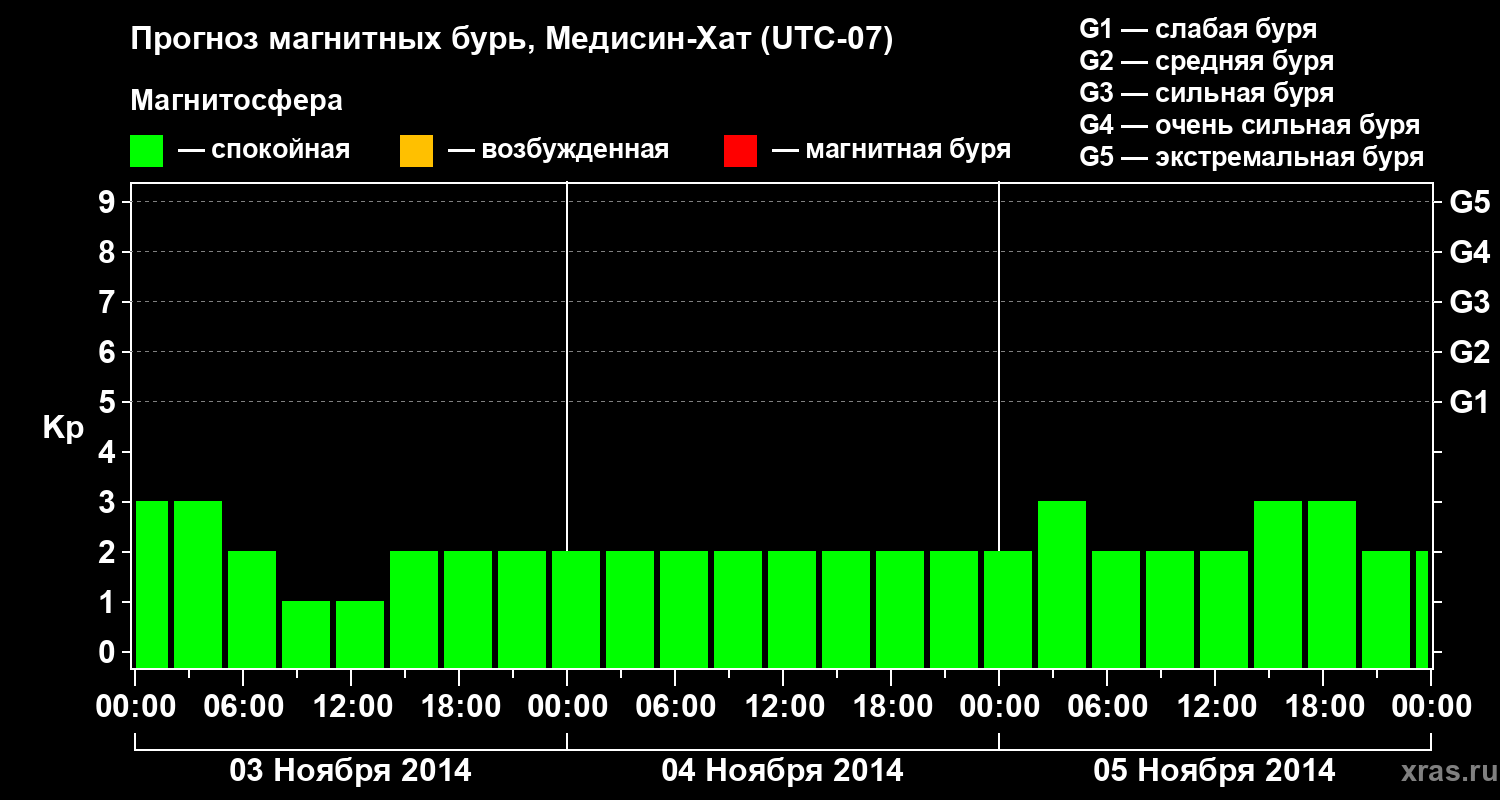 Прогноз магнитных бурь в Медисин-Хате — 3 ноября 2014 года