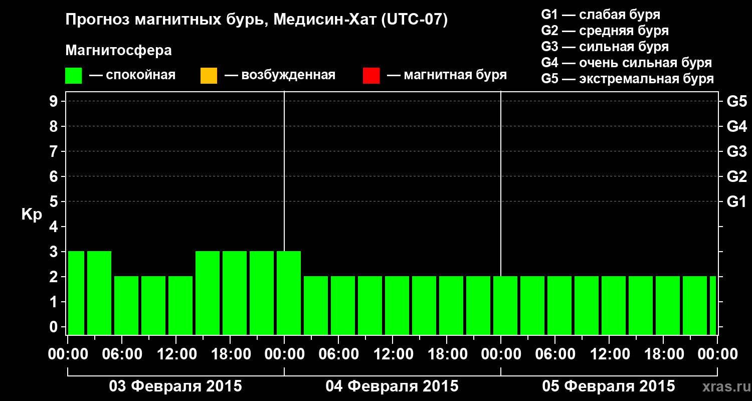Прогноз магнитных бурь в Медисин-Хате — 3 февраля 2015 года