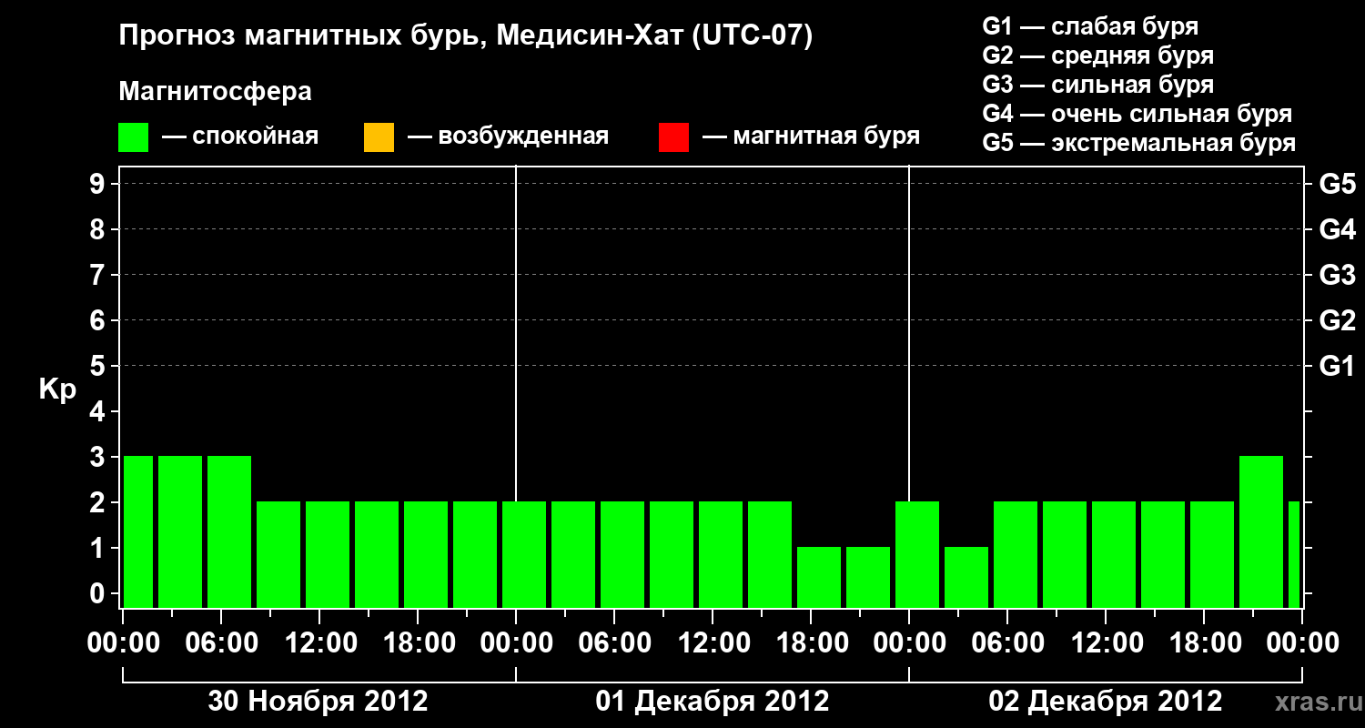 Прогноз магнитных бурь в Медисин-Хате — 30 ноября 2012 года