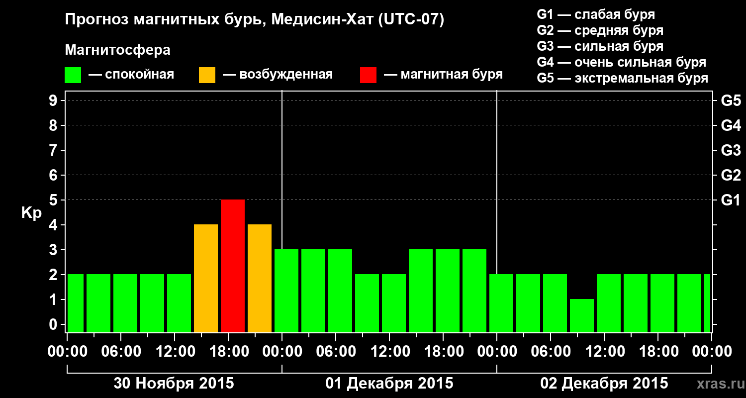 Прогноз магнитных бурь в Медисин-Хате — 30 ноября 2015 года