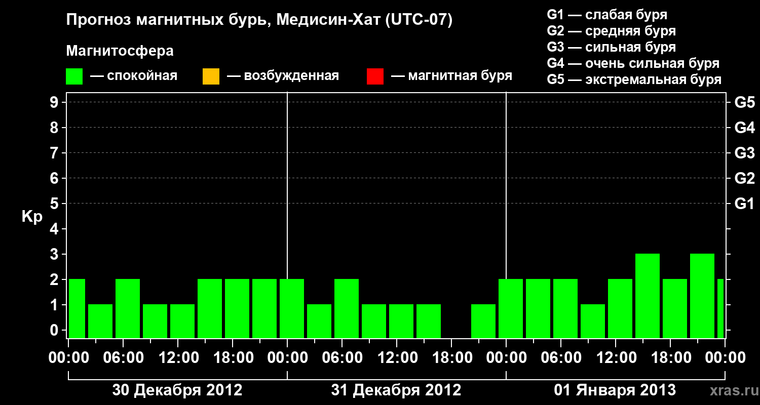 Прогноз магнитных бурь в Медисин-Хате — 30 декабря 2012 года