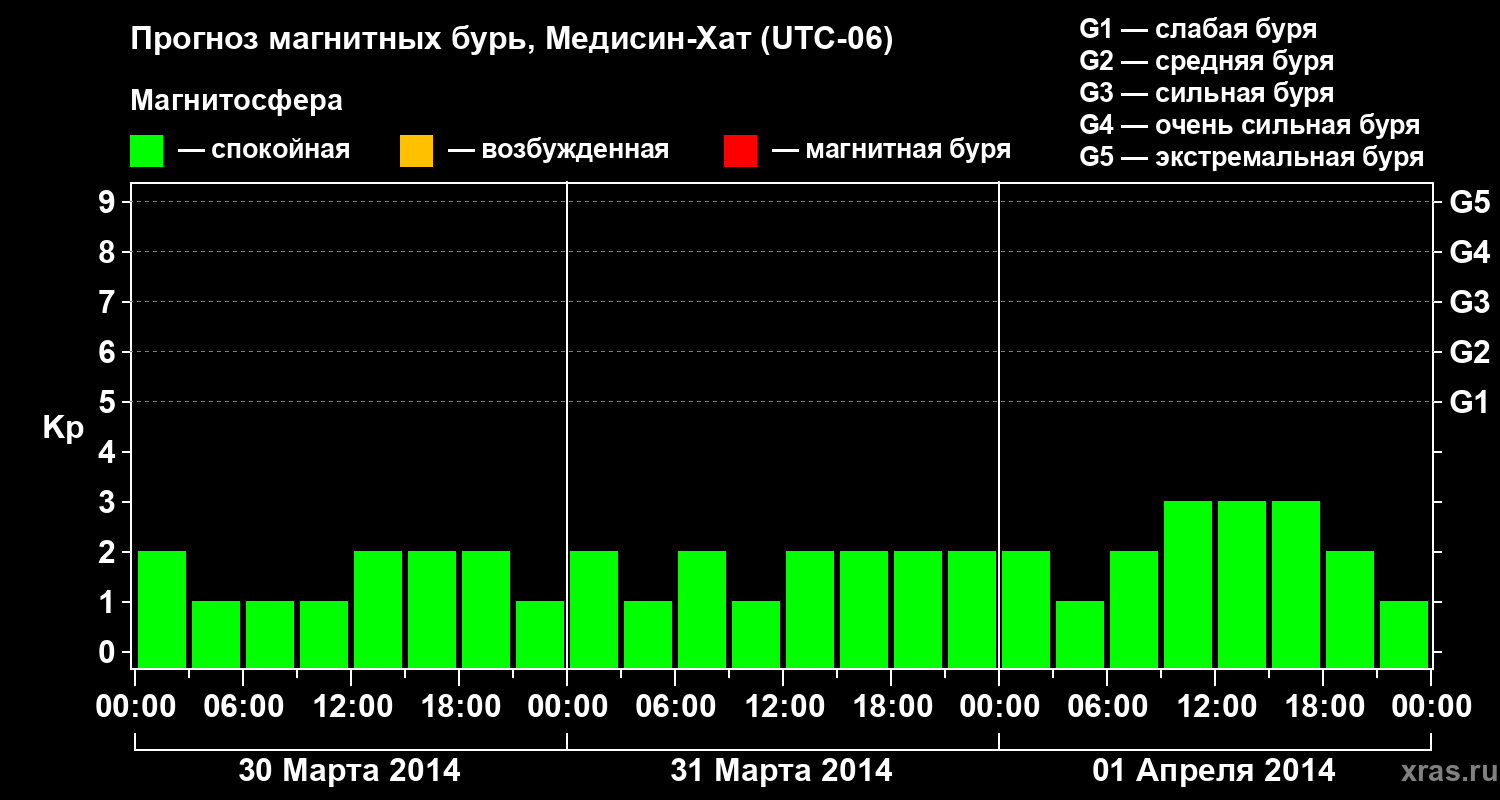 Прогноз магнитных бурь в Медисин-Хате — 30 марта 2014 года