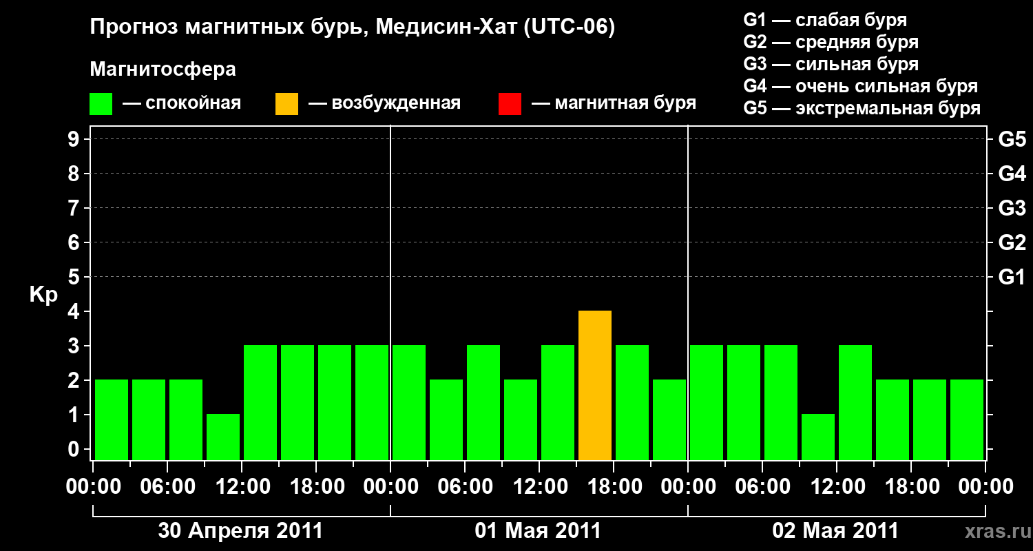 Прогноз магнитных бурь в Медисин-Хате — 30 апреля 2011 года