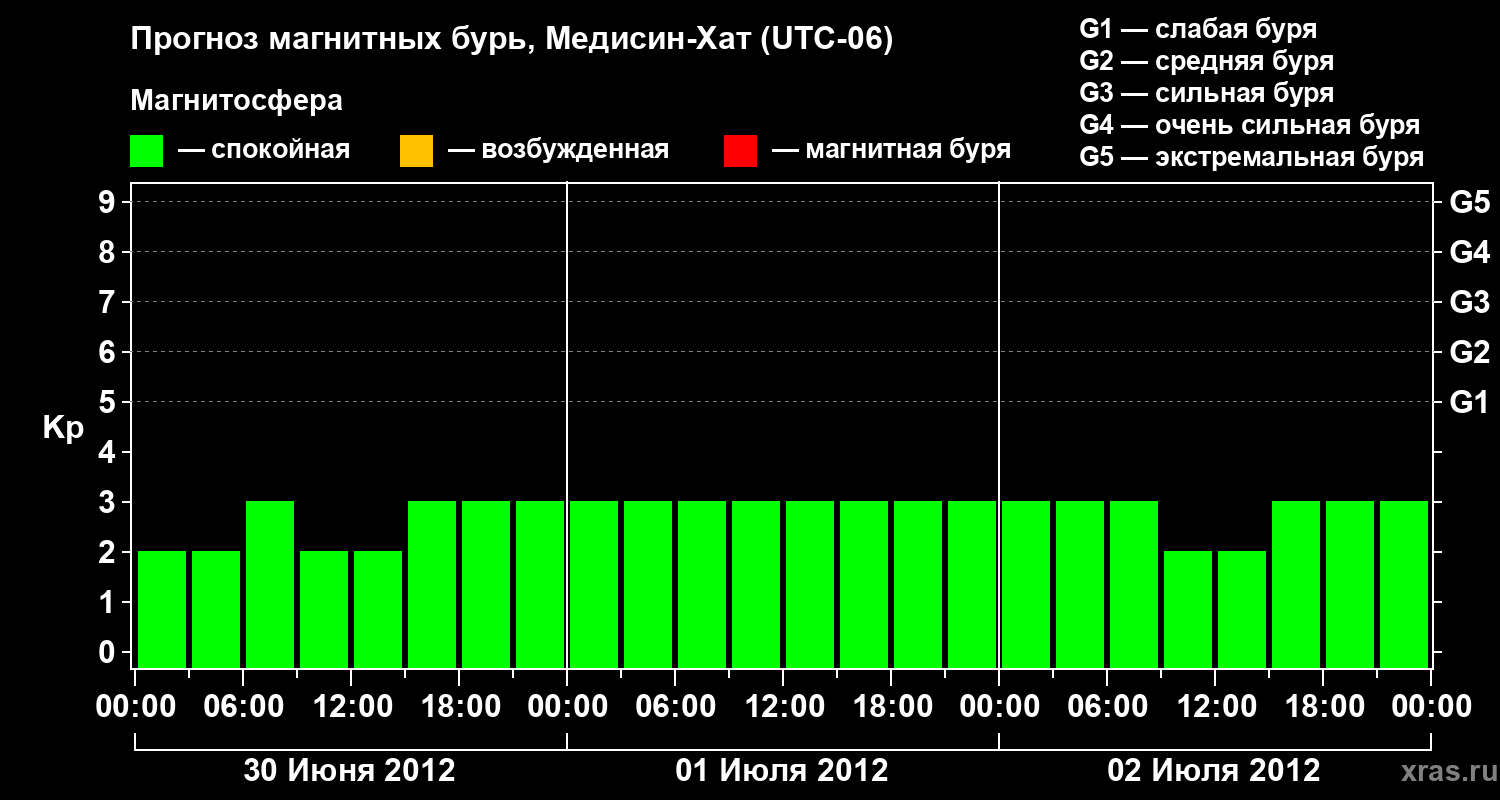 Прогноз магнитных бурь в Медисин-Хате — 30 июня 2012 года