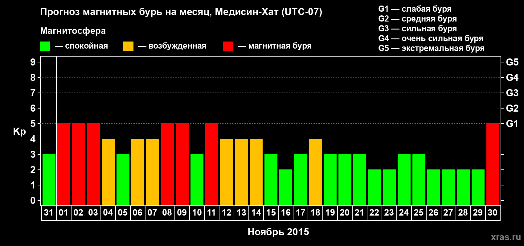 Прогноз магнитных бурь в Медисин-Хате — 31 октября 2015 года
