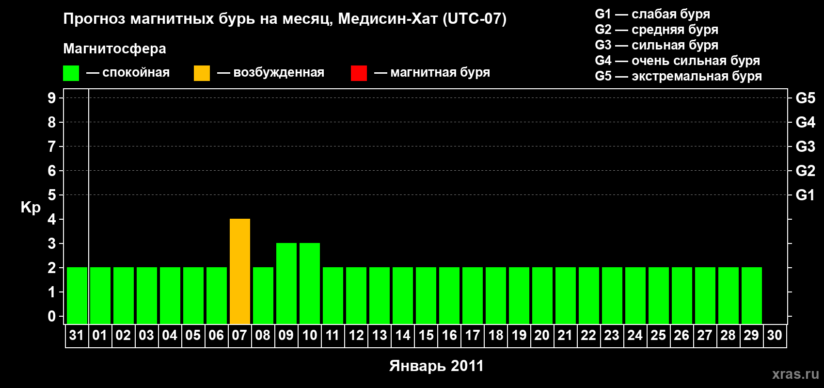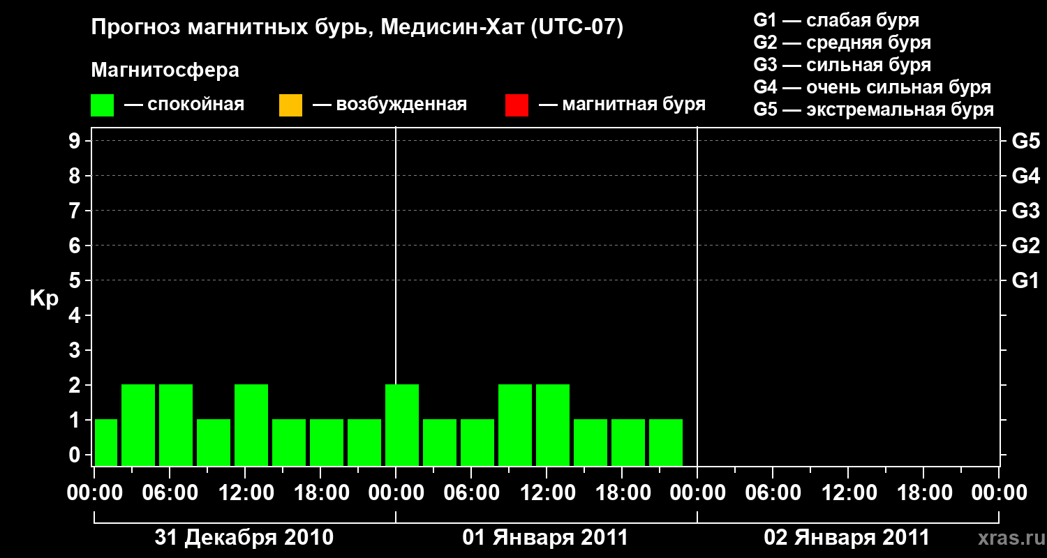 Прогноз магнитных бурь в Медисин-Хате — 31 декабря 2010 года