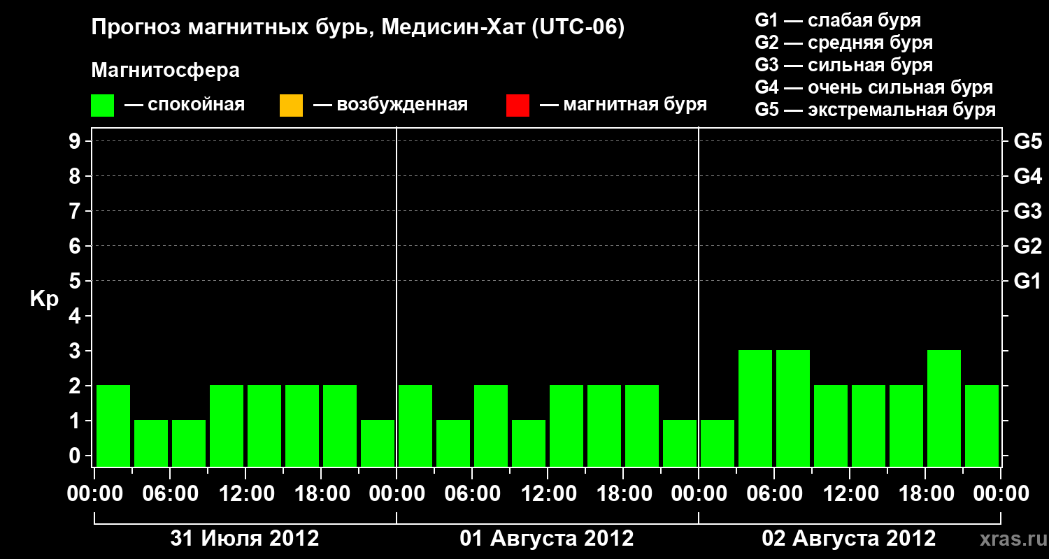 Прогноз магнитных бурь в Медисин-Хате — 31 июля 2012 года
