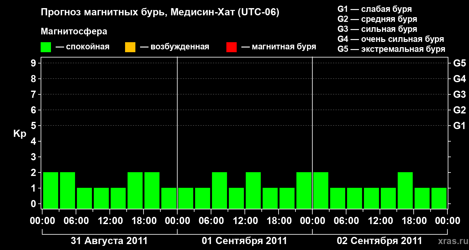 Прогноз магнитных бурь в Медисин-Хате — 31 августа 2011 года