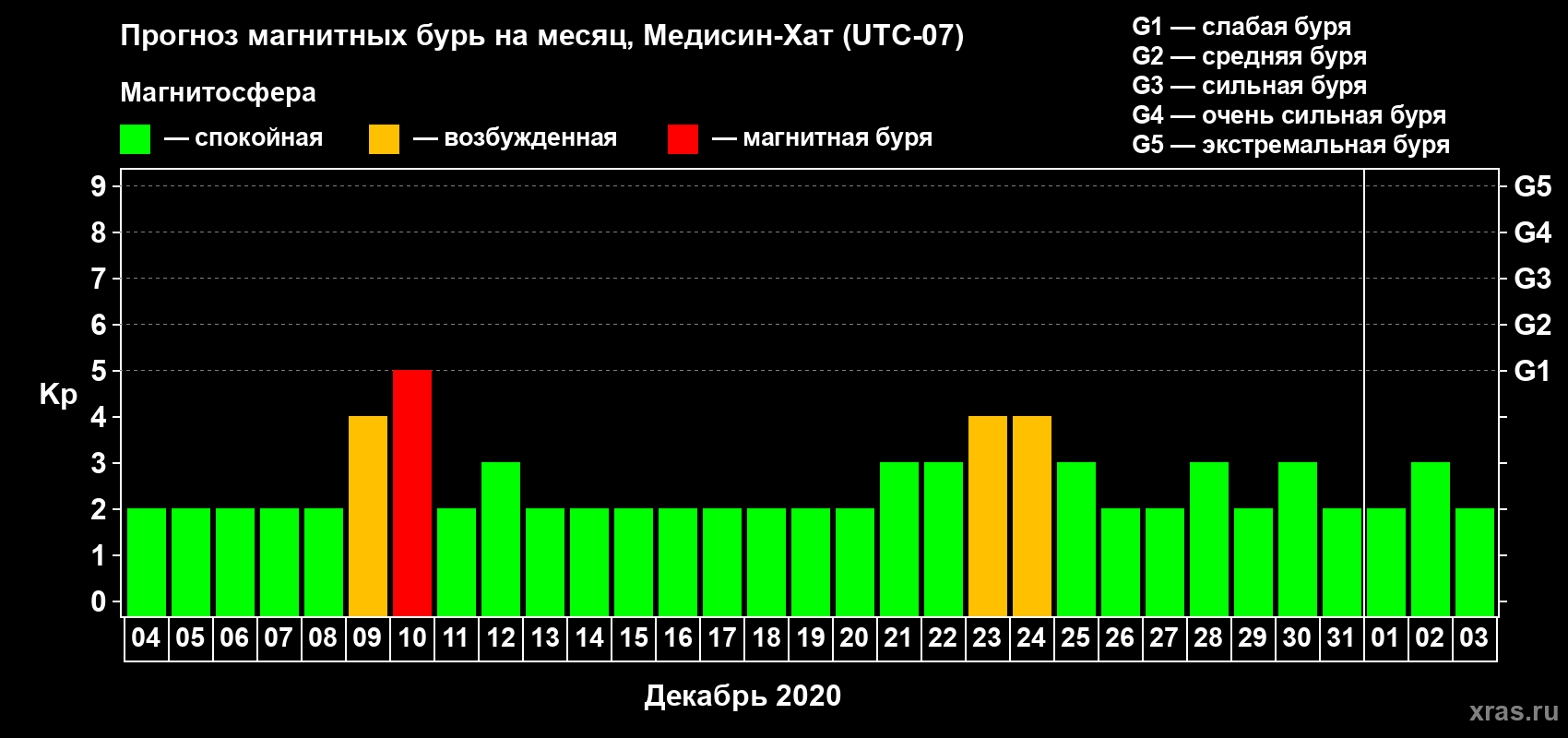 Прогноз магнитных бурь в Медисин-Хате — 4 декабря 2020 года