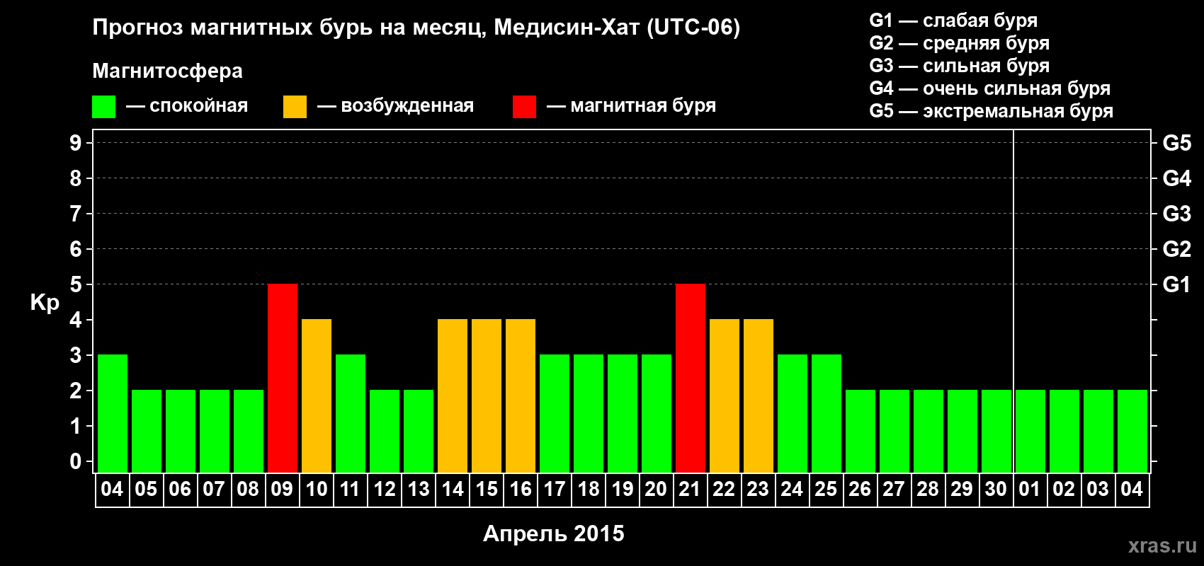 Прогноз магнитных бурь в Медисин-Хате — 4 апреля 2015 года