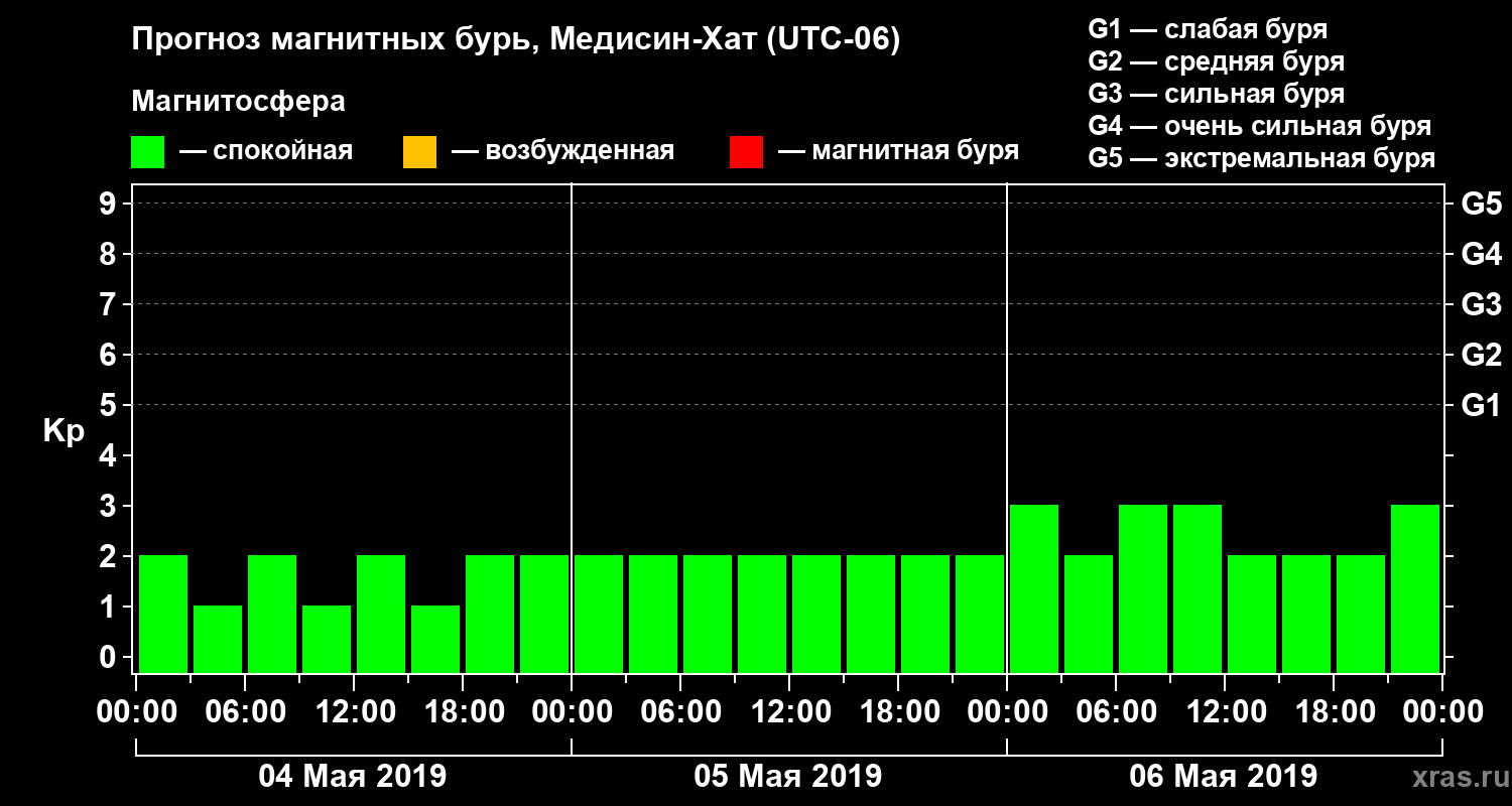 Прогноз магнитных бурь в Медисин-Хате — 4 мая 2019 года