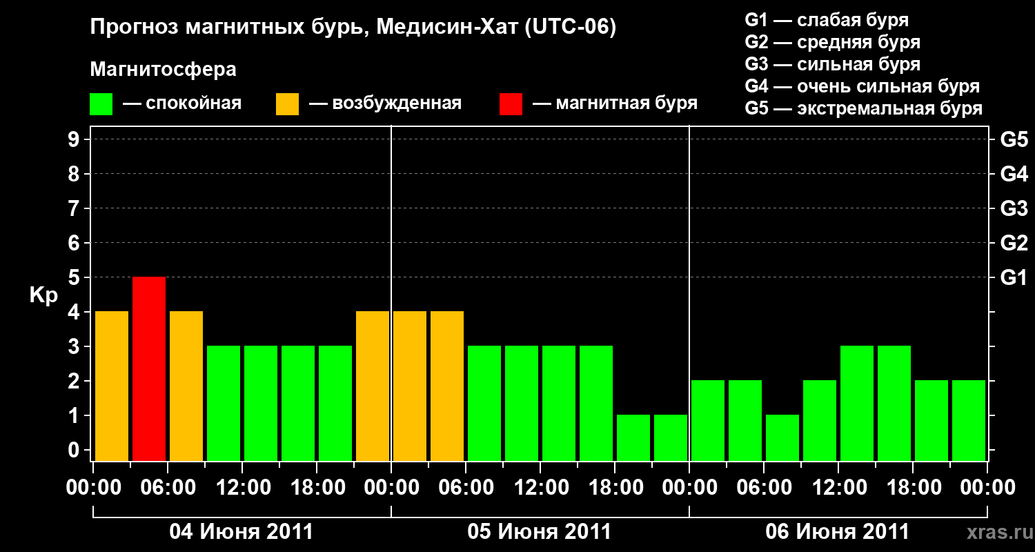 Прогноз магнитных бурь в Медисин-Хате — 4 июня 2011 года