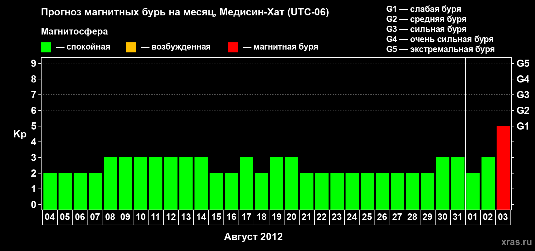 Прогноз магнитных бурь в Медисин-Хате на 4 августа 2012 года