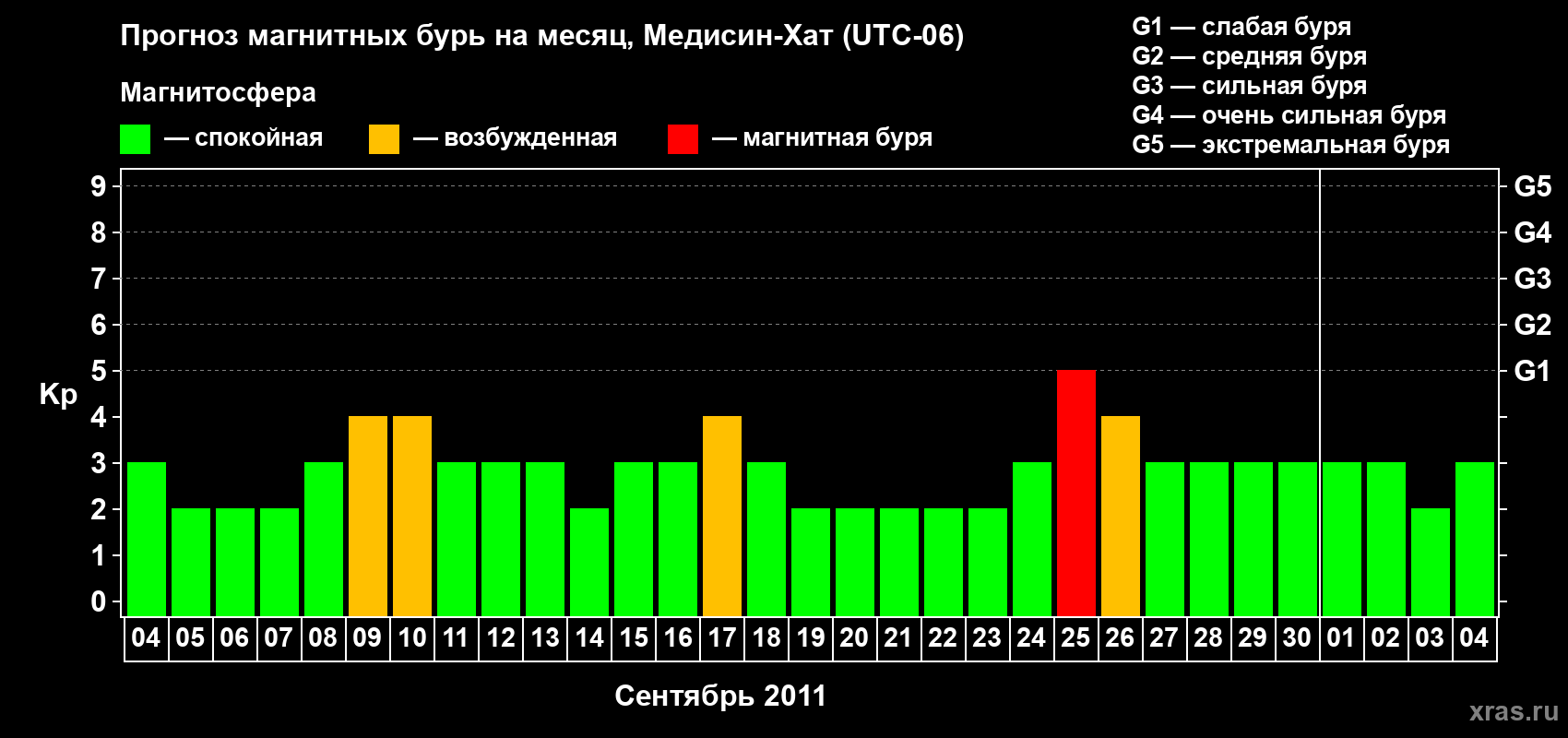 Прогноз магнитных бурь в Медисин-Хате — 4 сентября 2011 года