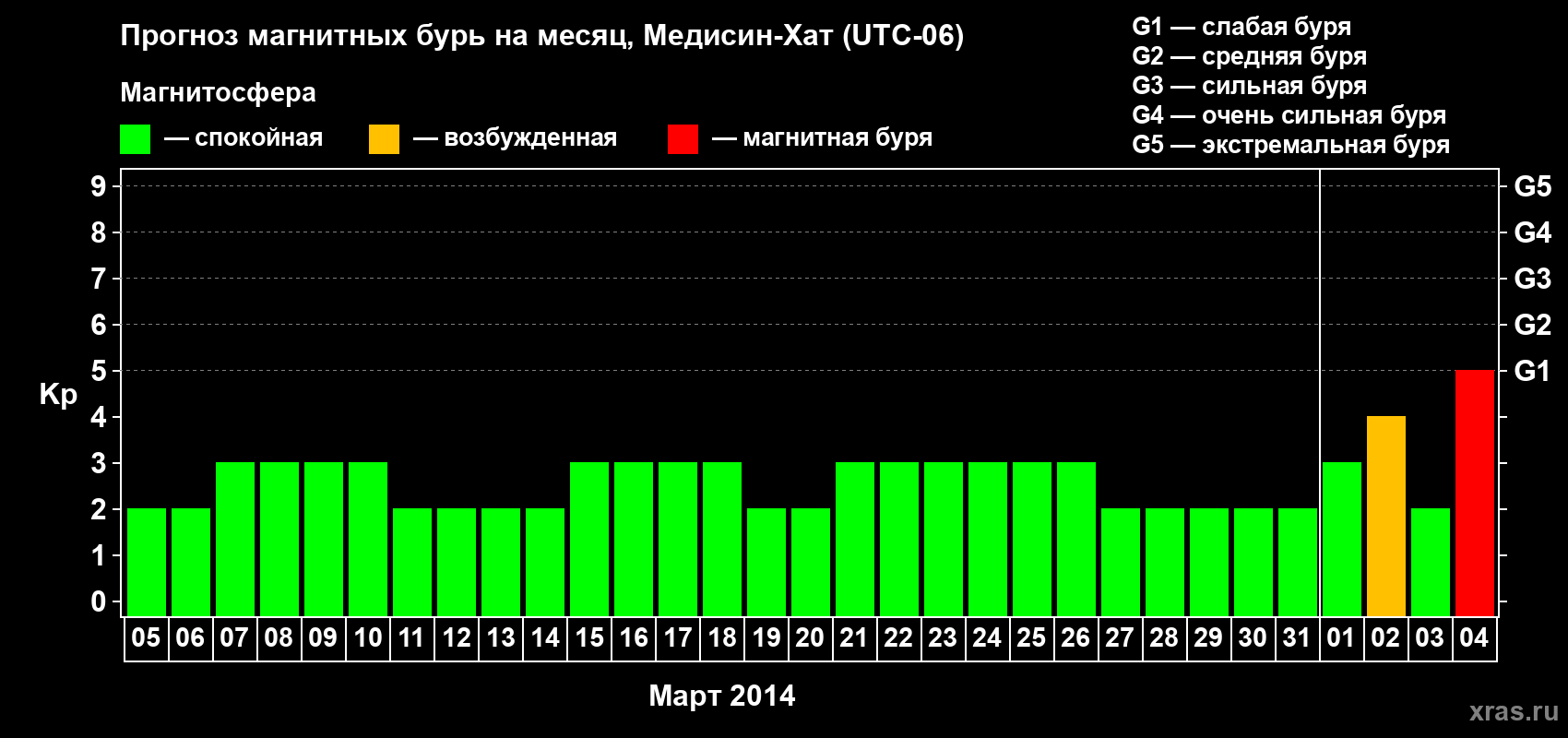 Прогноз магнитных бурь в Медисин-Хате — 5 марта 2014 года