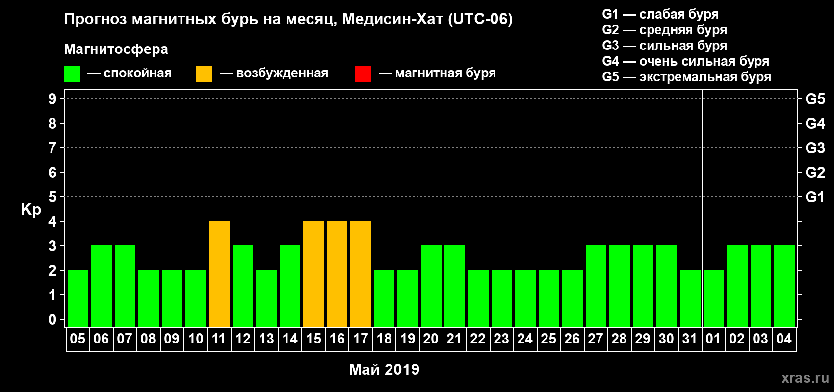 Прогноз магнитных бурь в Медисин-Хате — 5 мая 2019 года