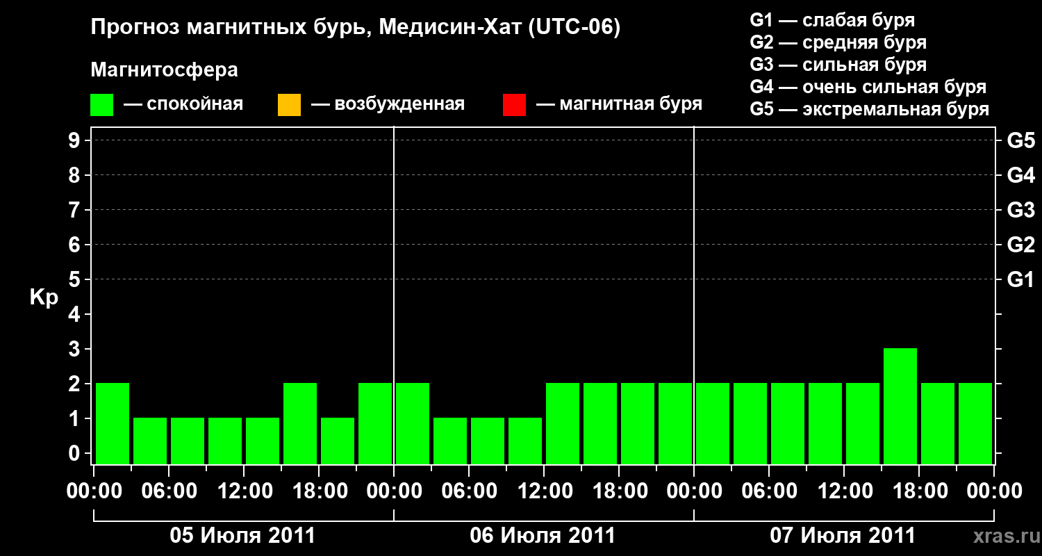 Прогноз магнитных бурь в Медисин-Хате — 5 июля 2011 года