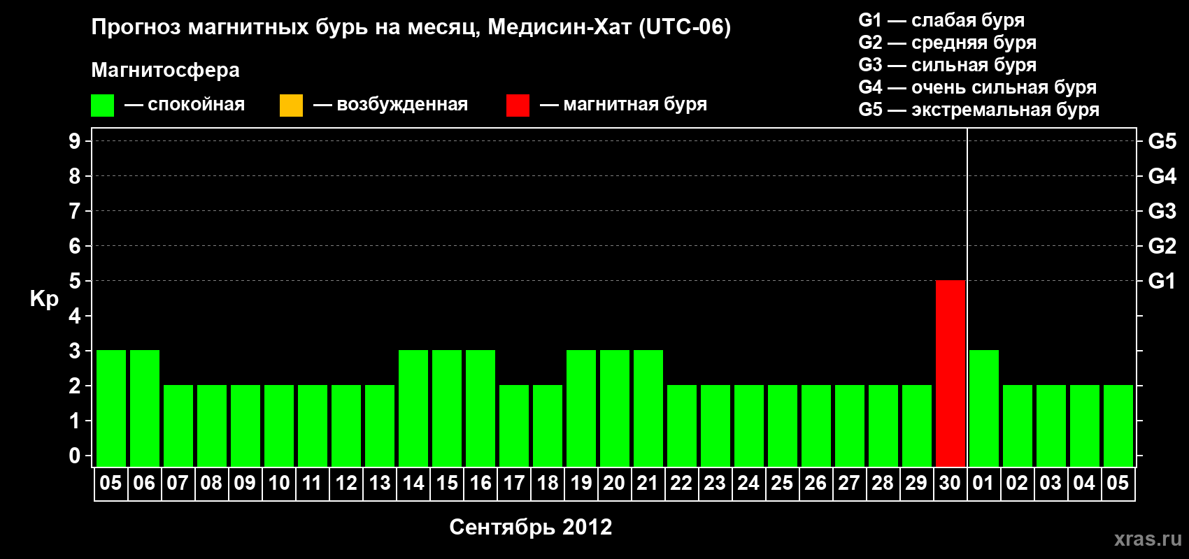 Прогноз магнитных бурь в Медисин-Хате — 5 сентября 2012 года