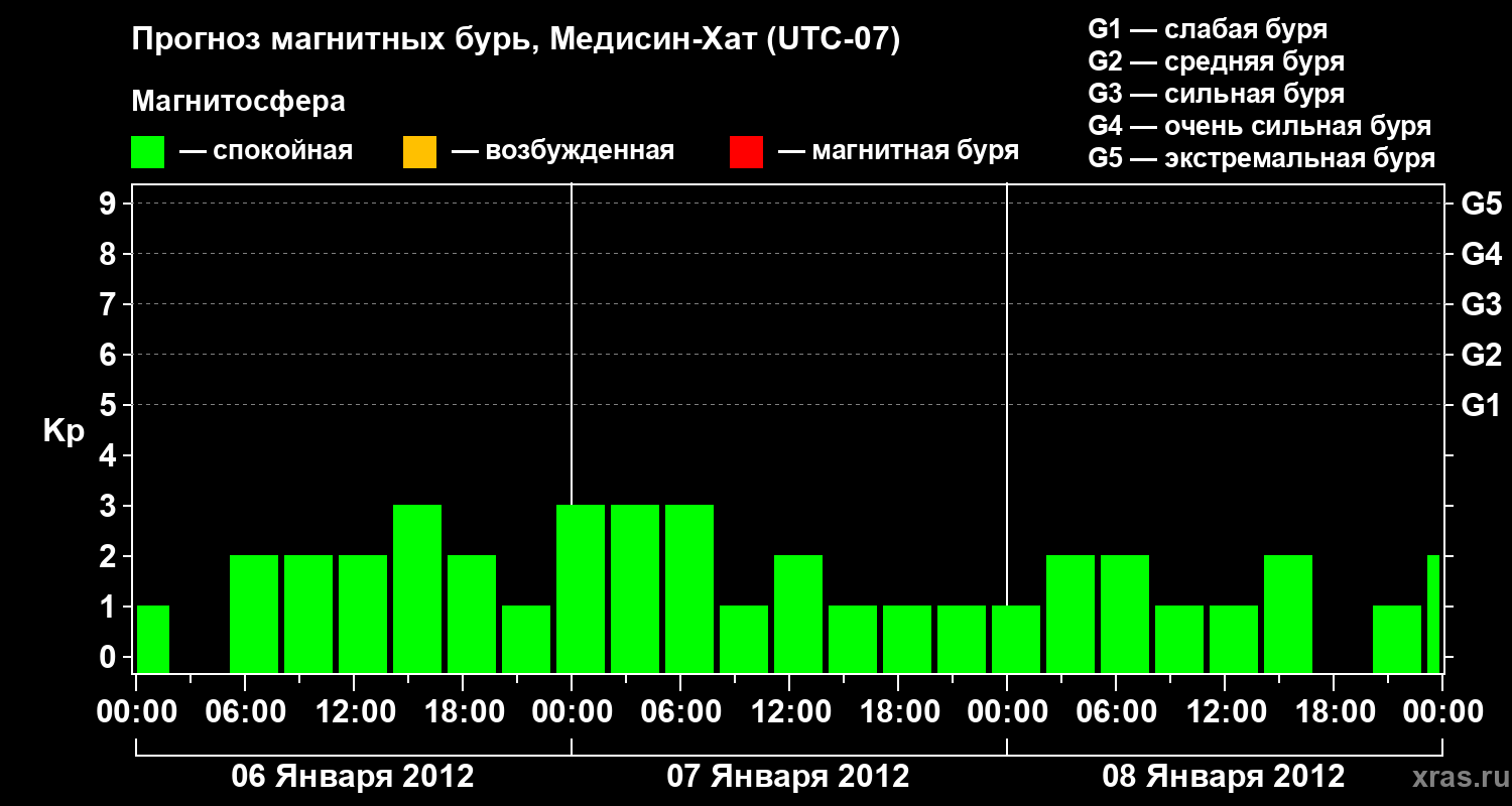 Прогноз магнитных бурь в Медисин-Хате — 6 января 2012 года
