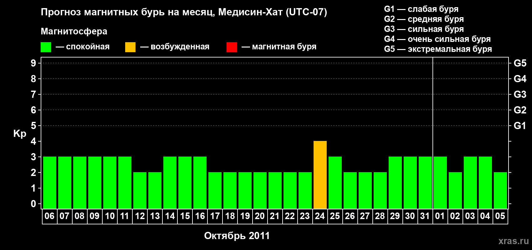 Прогноз магнитных бурь в Медисин-Хате — 6 октября 2011 года
