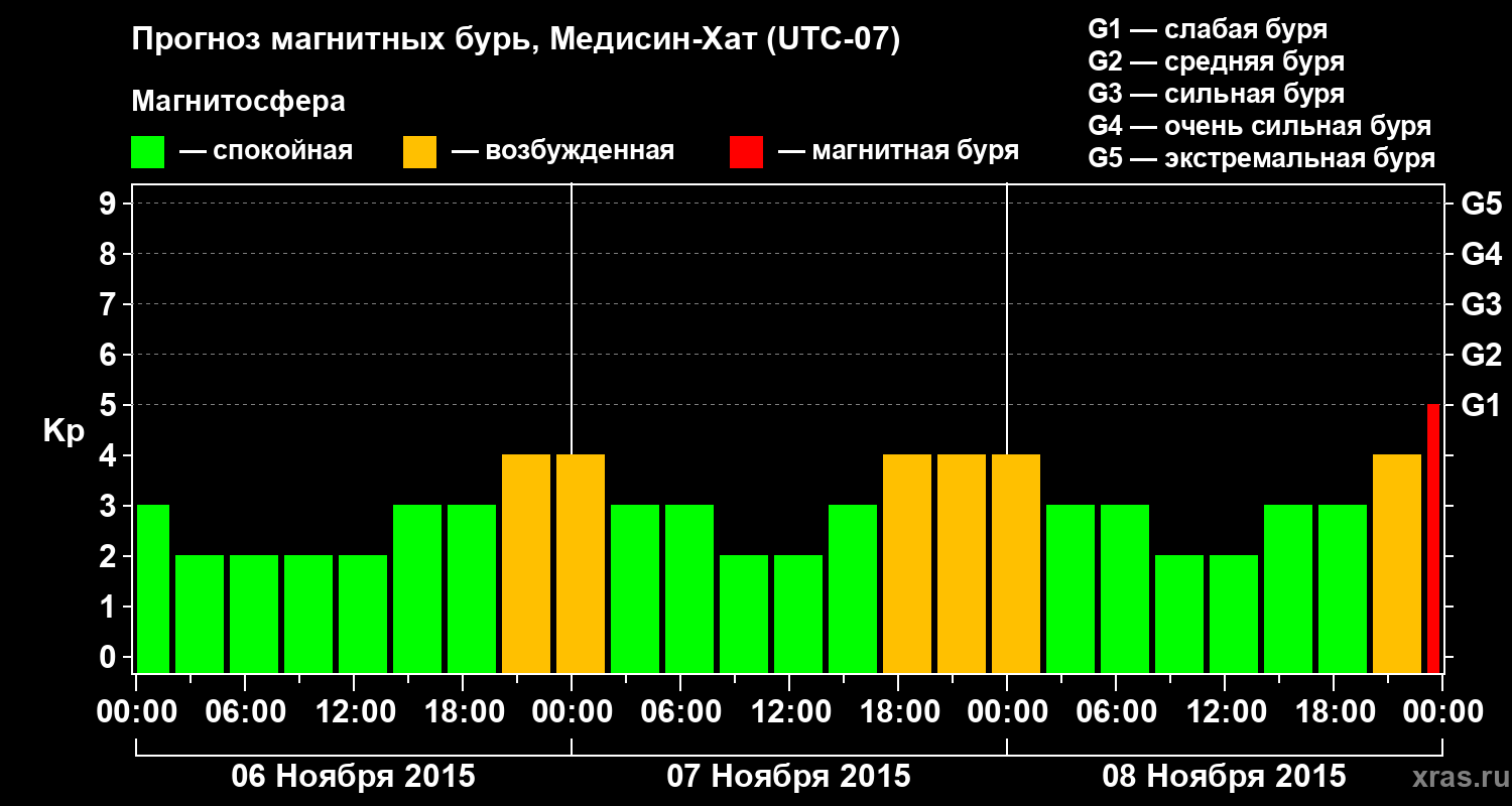 Прогноз магнитных бурь в Медисин-Хате — 6 ноября 2015 года