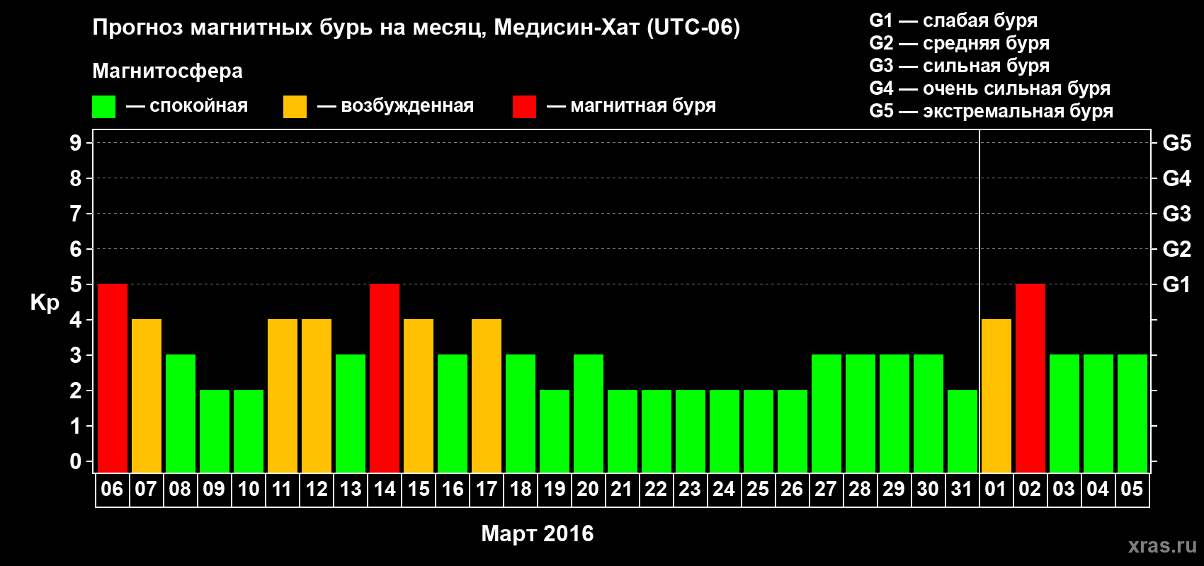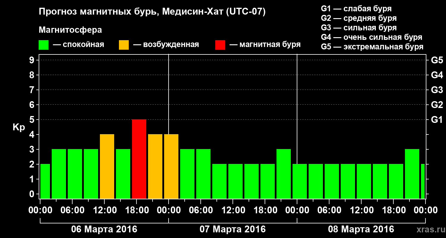 Прогноз магнитных бурь в Медисин-Хате — 6 марта 2016 года
