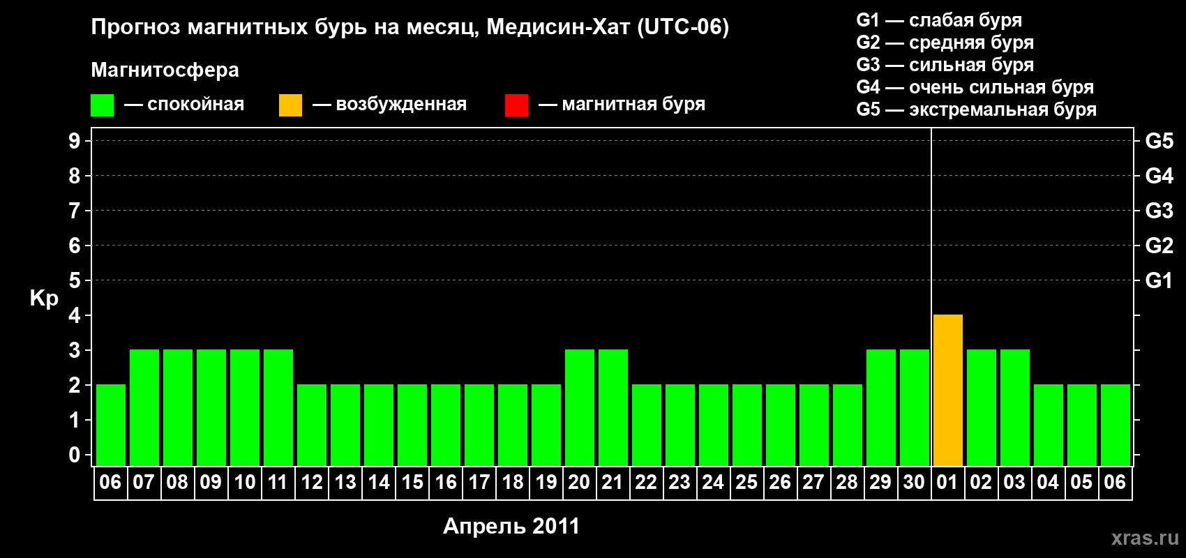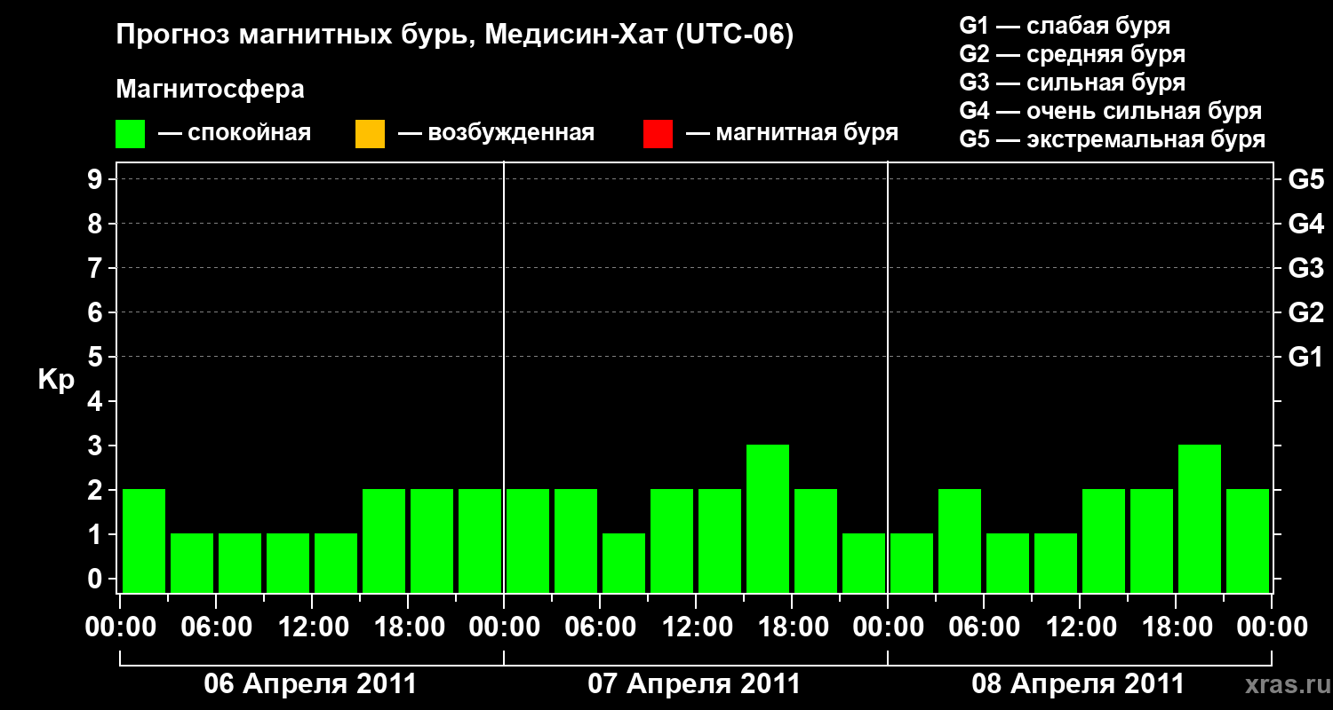 Прогноз магнитных бурь в Медисин-Хате — 6 апреля 2011 года