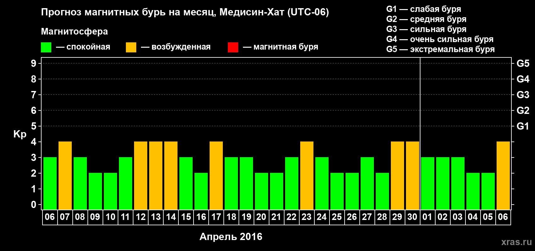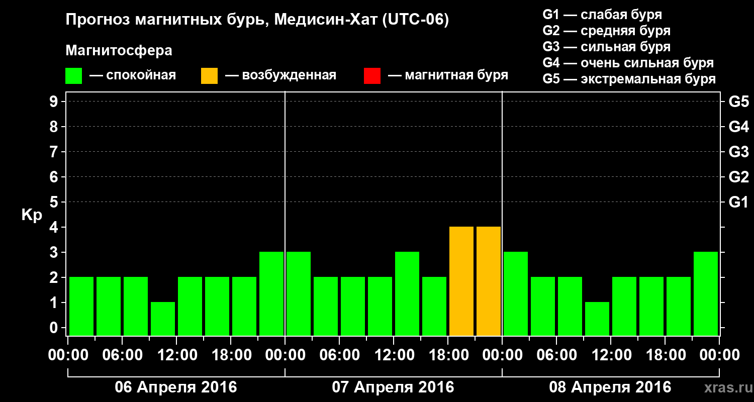 Прогноз магнитных бурь в Медисин-Хате — 6 апреля 2016 года
