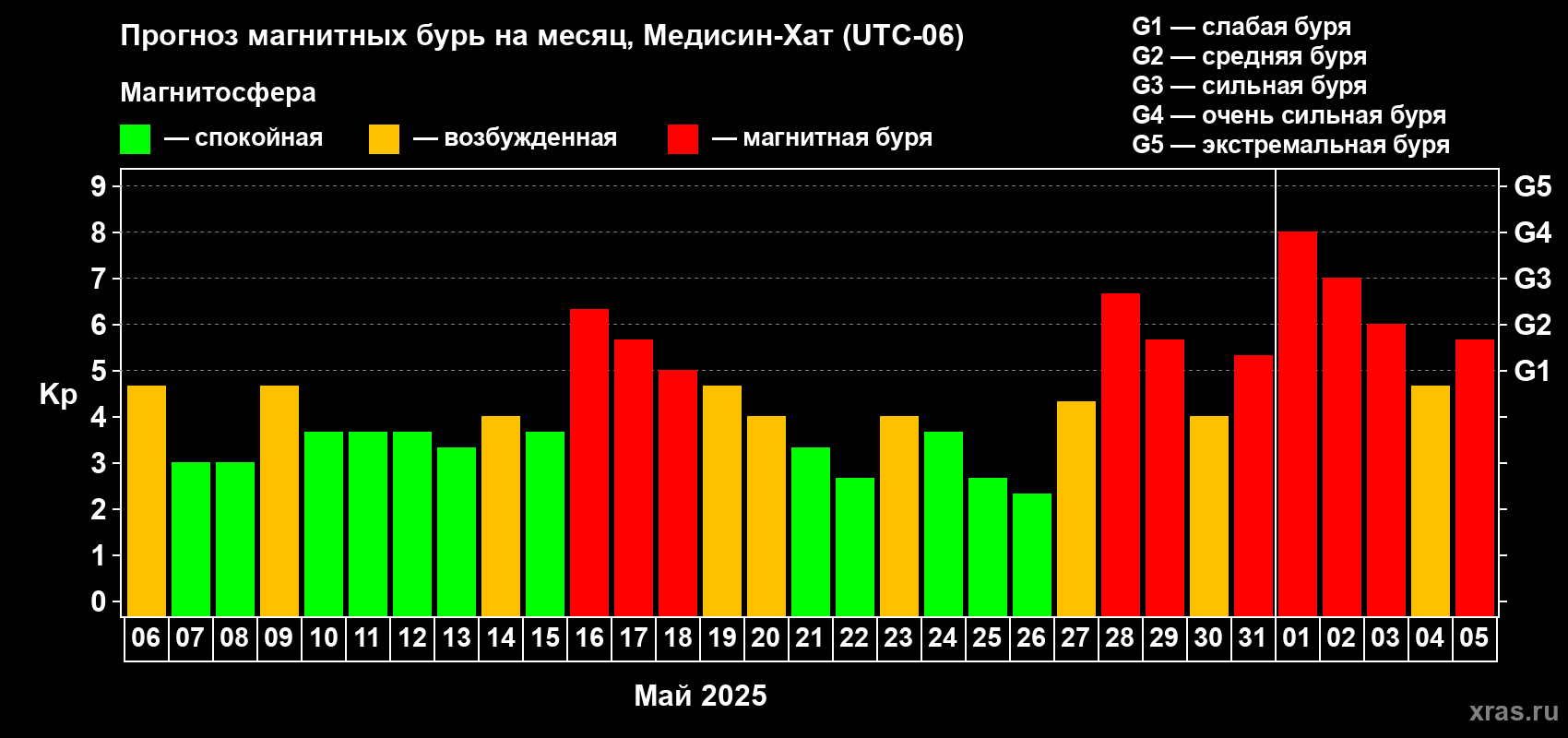 Прогноз магнитных бурь в Медисин-Хате — 6 мая 2025 года