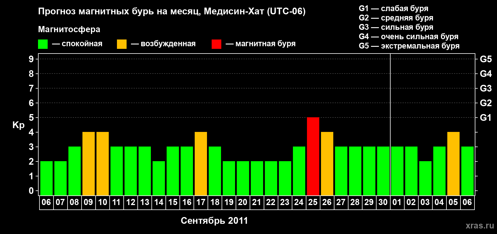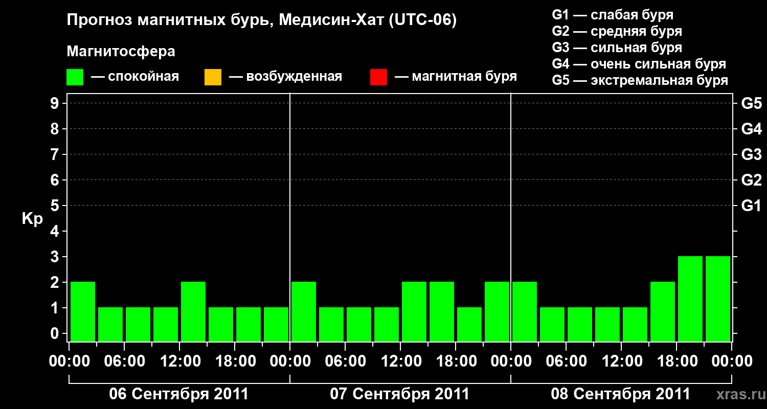 Прогноз магнитных бурь в Медисин-Хате — 6 сентября 2011 года