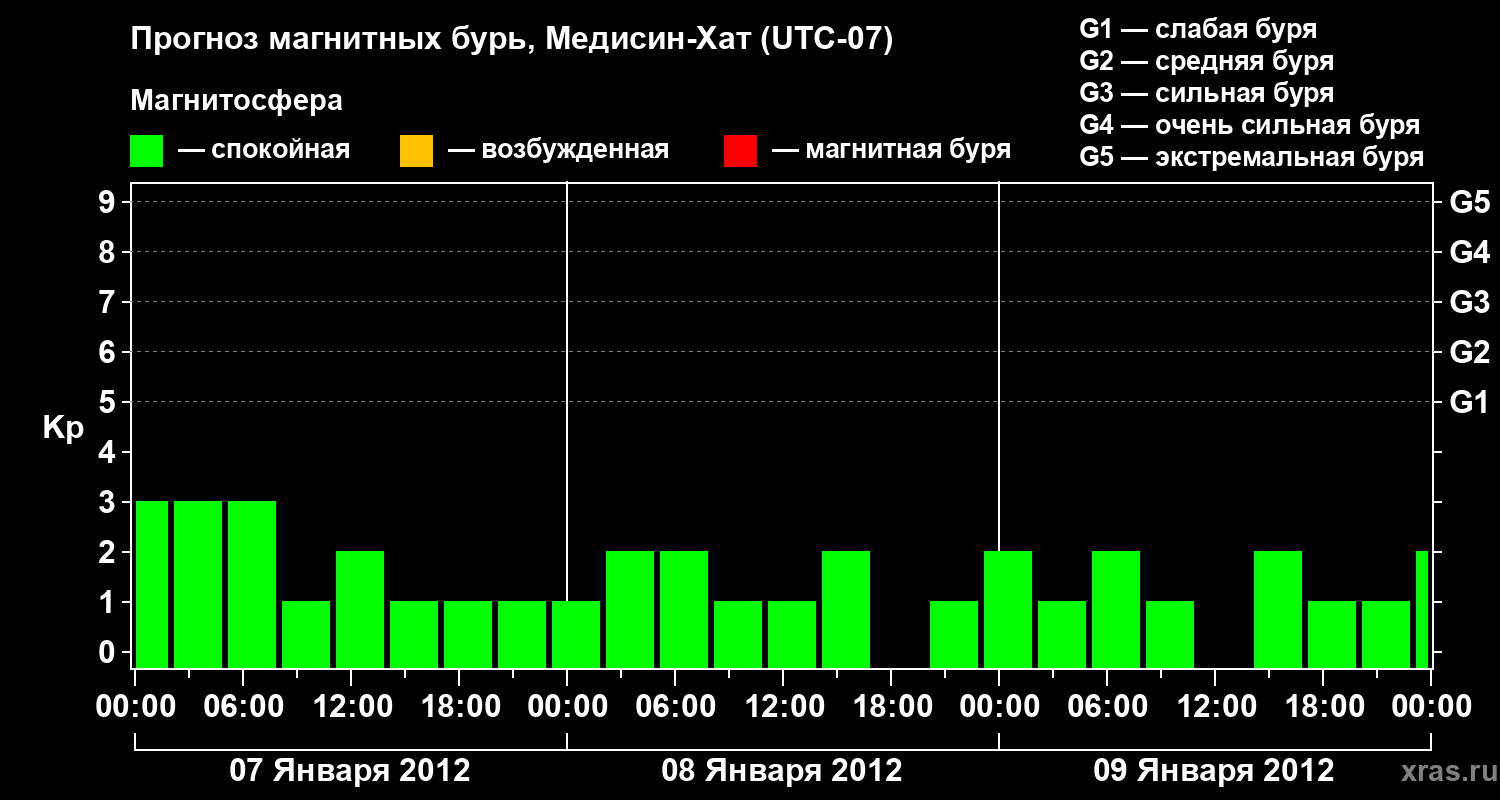 Прогноз магнитных бурь в Медисин-Хате — 7 января 2012 года