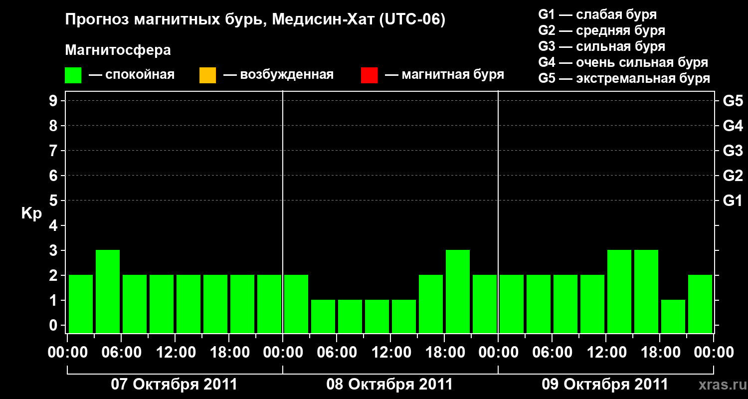 Прогноз магнитных бурь в Медисин-Хате — 7 октября 2011 года