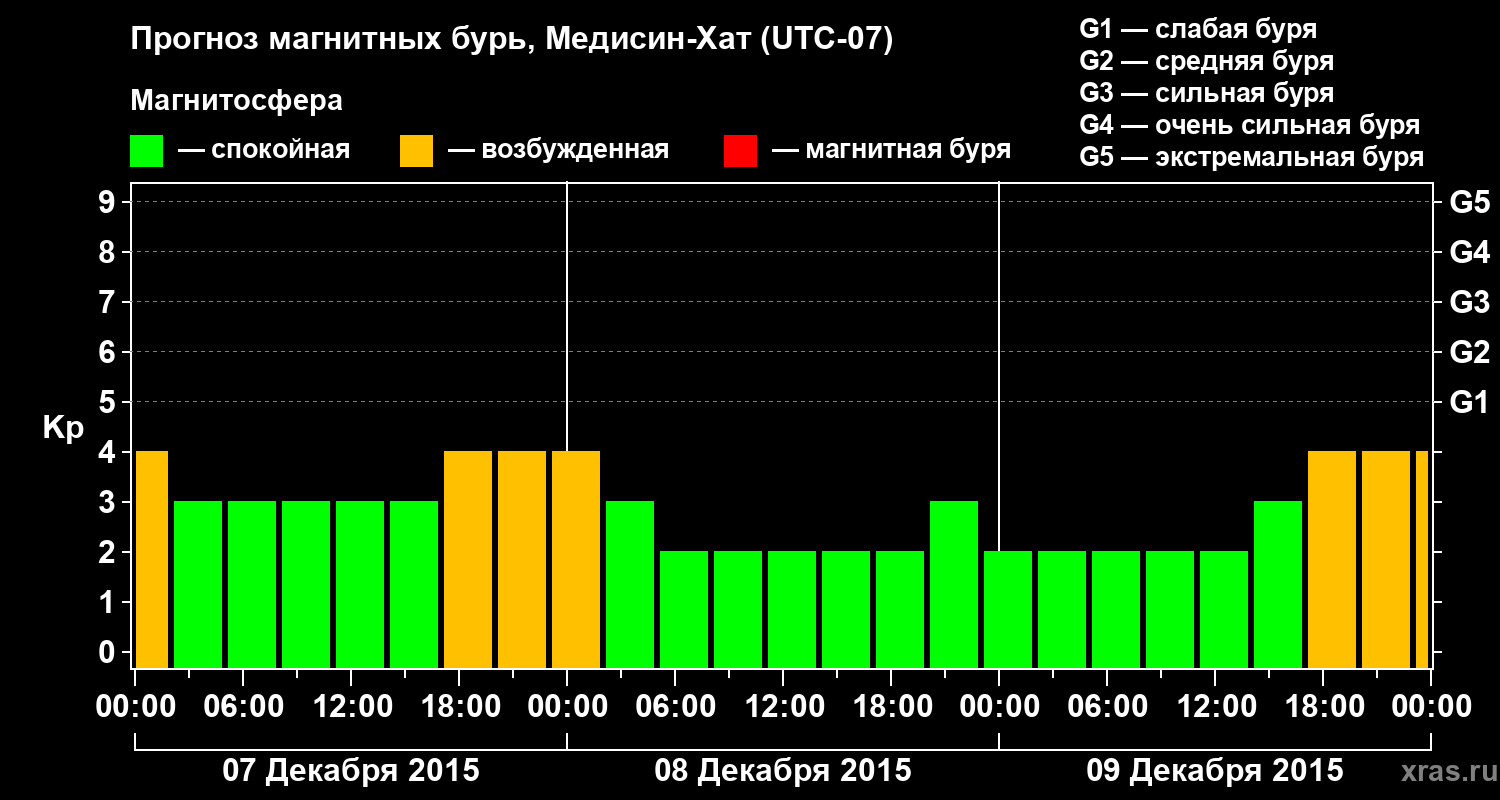 Прогноз магнитных бурь в Медисин-Хате — 7 декабря 2015 года