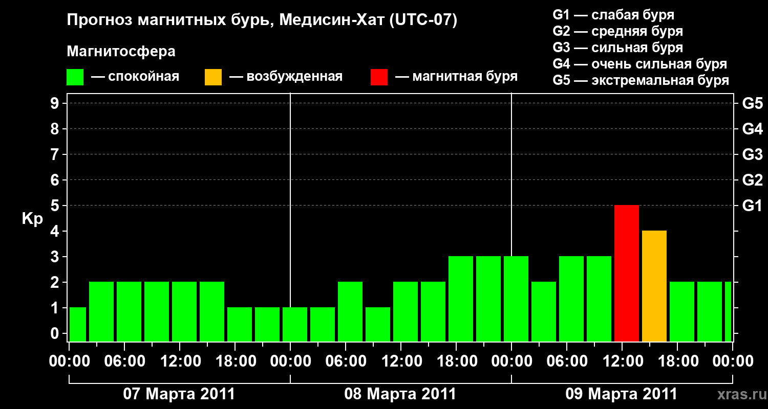 Прогноз магнитных бурь в Медисин-Хате — 7 марта 2011 года