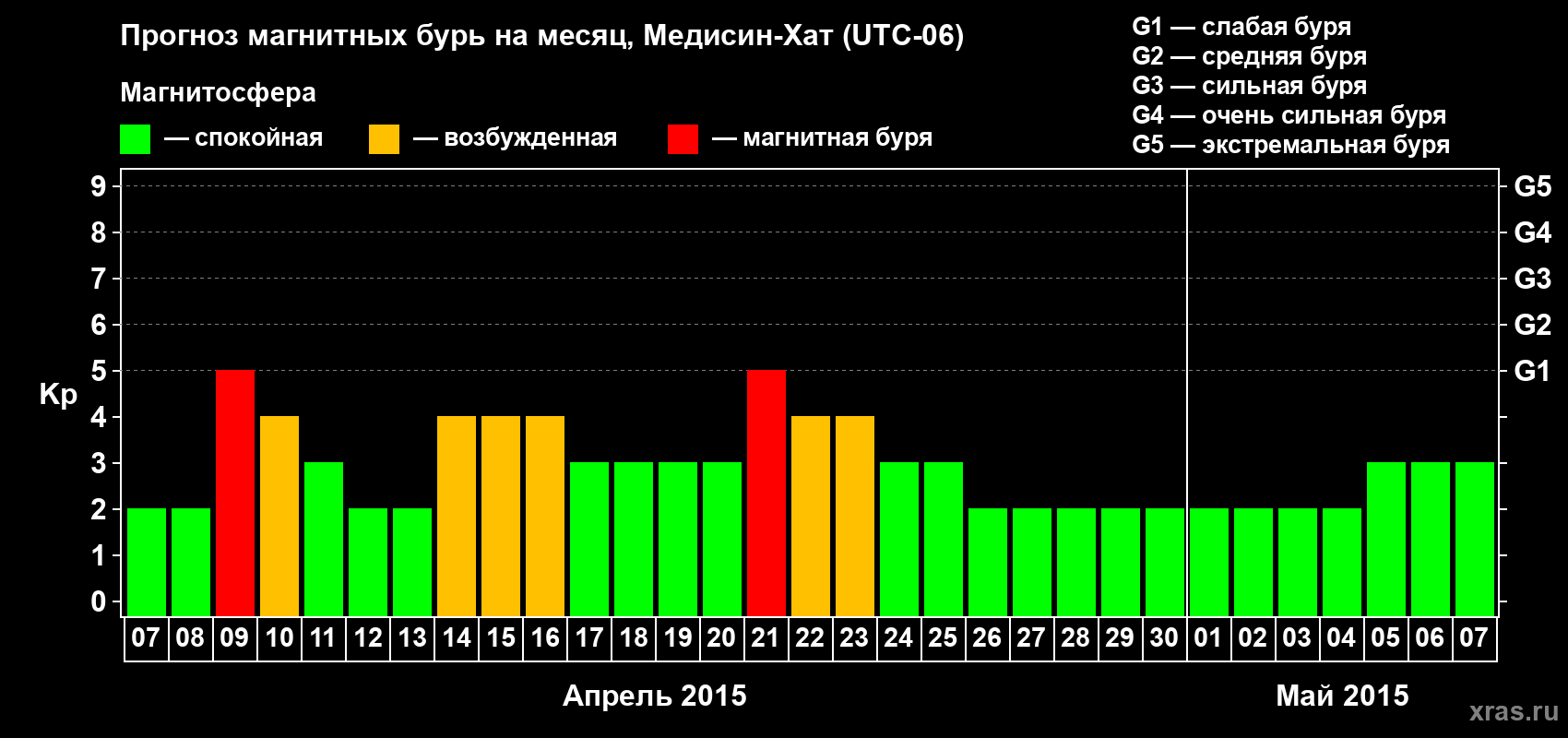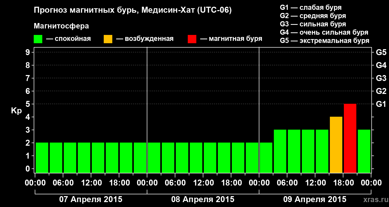 Прогноз магнитных бурь в Медисин-Хате — 7 апреля 2015 года