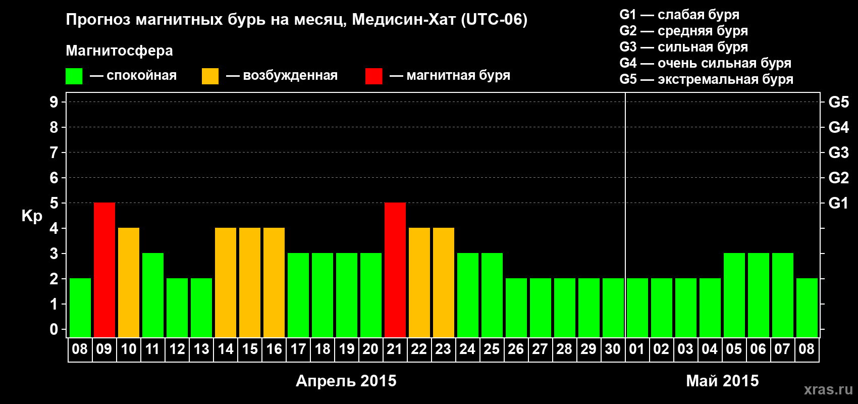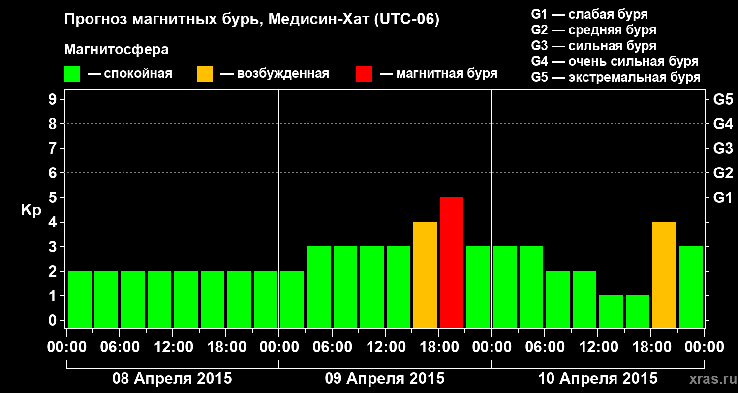 Прогноз магнитных бурь в Медисин-Хате — 8 апреля 2015 года