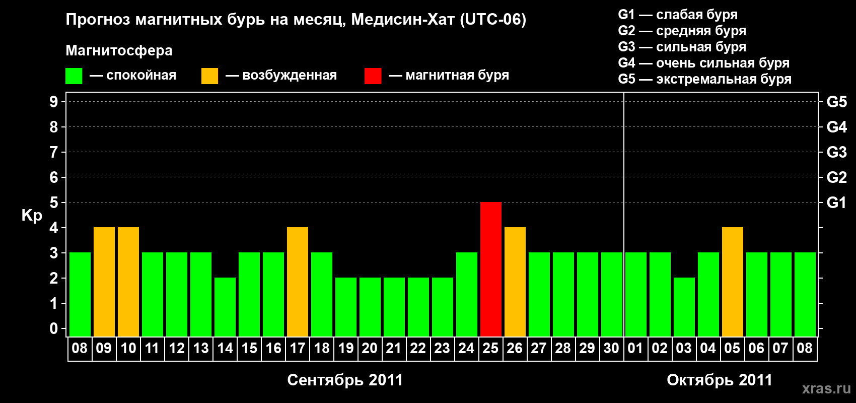 Прогноз магнитных бурь в Медисин-Хате — 8 сентября 2011 года