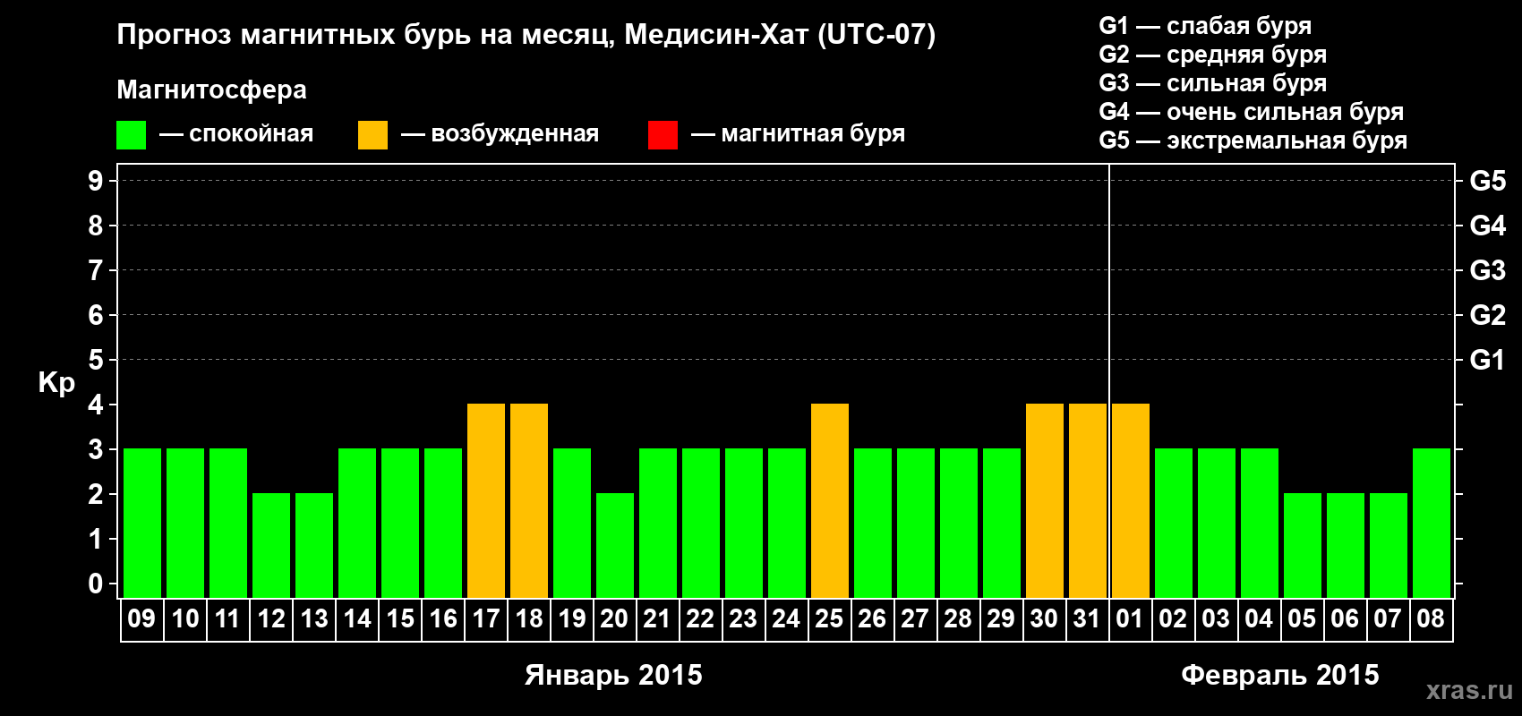 Прогноз магнитных бурь в Медисин-Хате — 9 января 2015 года