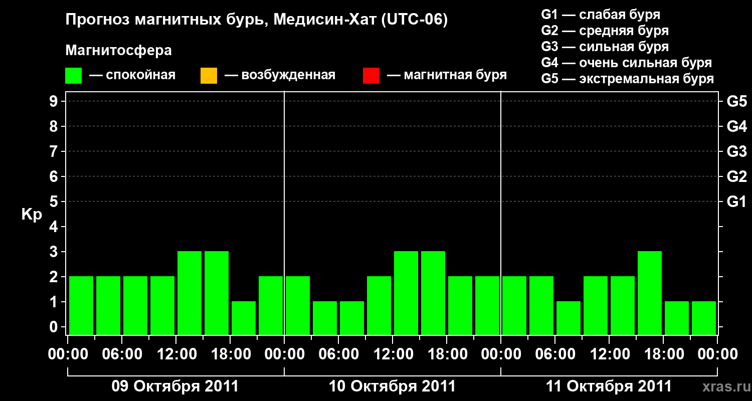 Прогноз магнитных бурь в Медисин-Хате — 9 октября 2011 года