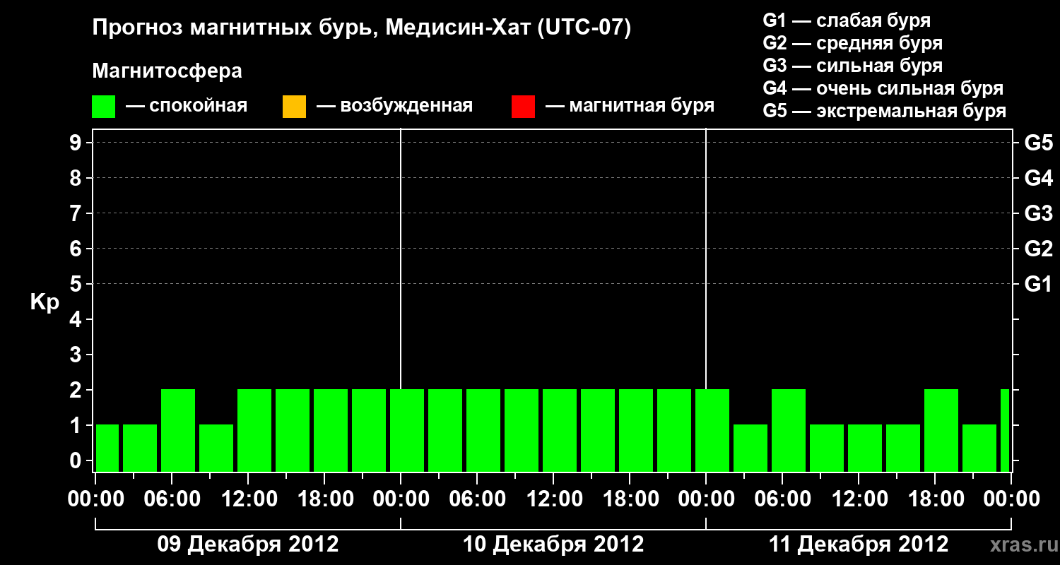 Прогноз магнитных бурь в Медисин-Хате — 9 декабря 2012 года