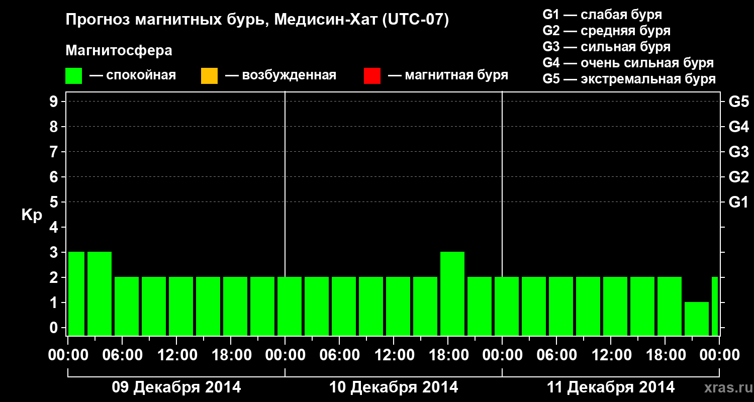 Прогноз магнитных бурь в Медисин-Хате — 9 декабря 2014 года